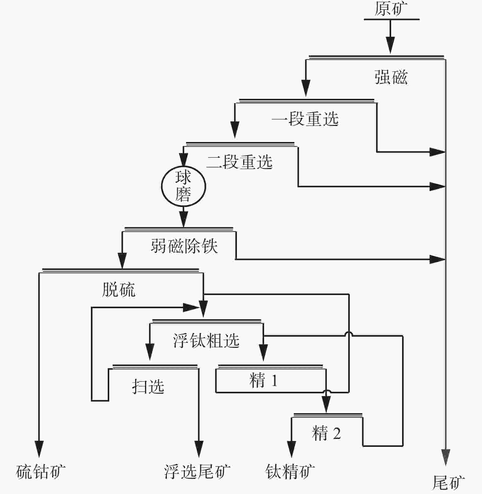 % 产品名称 产率 TiO2品位 回收率 钛精矿 4.58 48.22 35.19 尾矿 95.42 4.26 64.81 原矿 100.00 6.27 100.00 -