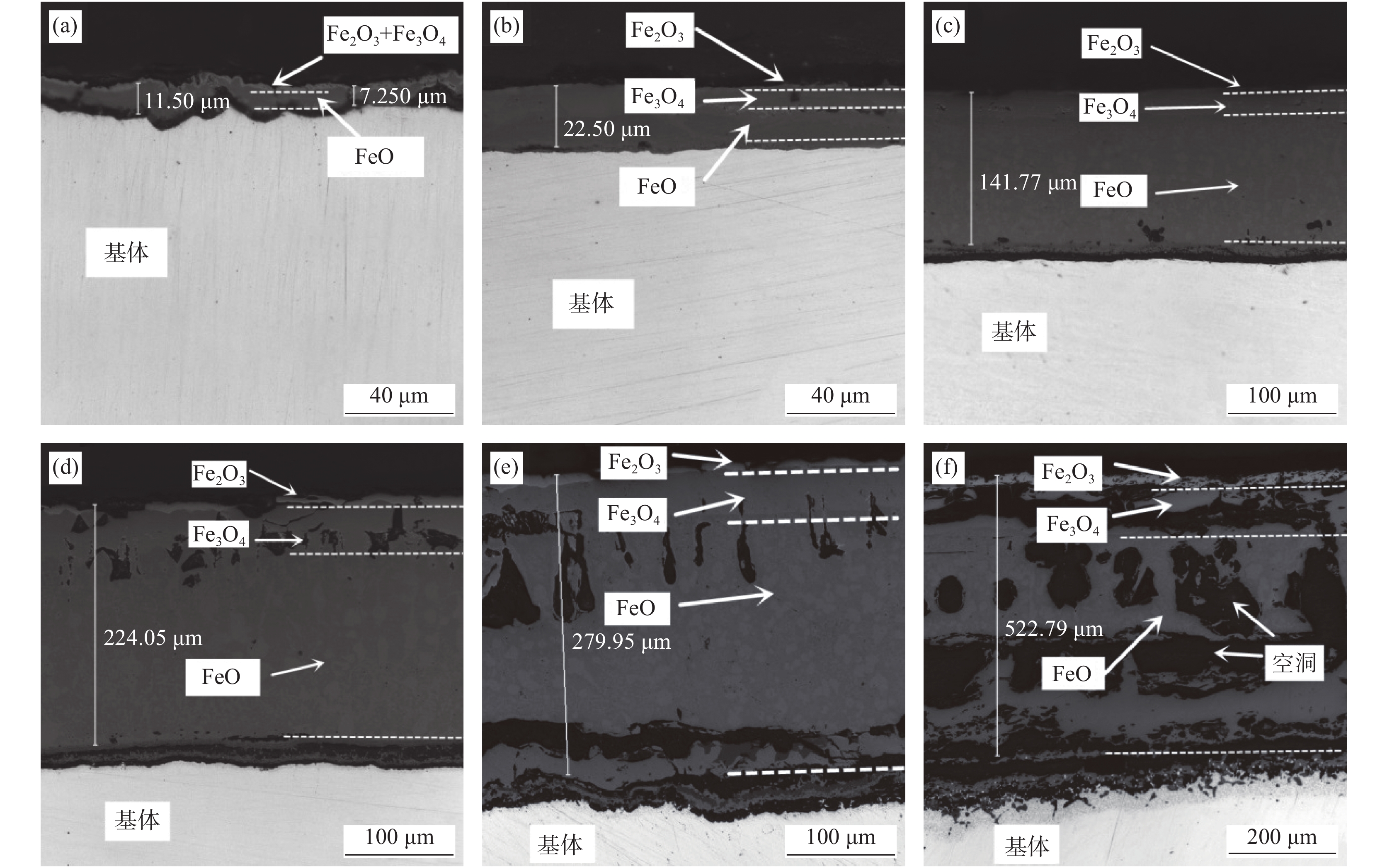 [1] Wang Zhiyi, Wang Caihong. Research and process optimization of weathering steel Q235NH[J]. Wide and Heavy Plate, 2014,(2):5−8. (王智轶, 王彩虹. 耐候钢Q235NH的研制与工艺优化[J]. 宽厚板, 2014,(2):5−8. doi: 10.3969/j.issn.1009-7864.2014.02.002 [2] Sun Bin, Liu Xiaofeng, Zhang Lianyong, et al. Effect of hot-rolled process parameters on pickling behavior of strip[J]. Journal of Shenyang University(Natural Science), 2017,29(2):95−98. (孙彬, 刘晓凤, 张连永, 等. 热轧工艺参数对带钢酸洗行为的影响[J]. 沈阳大学学报(自然科学版), 2017,29(2):95−98. [3] Wang Jianming, Liu Xiaofeng, Sun Bin, et al. Oxidation dynamics of Fe-0.2Si and Fe-2Si steels under water vapor at high temperature[J]. Journal of Shenyang University(Natural Science), 2017,29(5):349−352. (王建明, 刘晓凤, 孙彬, 等. Fe-0.2Si钢和Fe-2Si钢在水蒸气条件下高温氧化动力学研究[J]. 沈阳大学学报(自然科学版), 2017,29(5):349−352. [4] Zhao Xiaolong, Wang Yongqi, Tang Xingchang, et al. Review on the oxidation mechanism and its research of steel billet in heating process[J]. Steel Rolling, 2019,36(6):66−68, 82. (赵小龙, 王雍期, 唐兴昌, 等. 钢坯在加热过程中的氧化机理及其研究综述[J]. 轧钢, 2019,36(6):66−68, 82. [5] Wang Jianming, Li Guoqiang, Sun Bin, et al. Analysis on high temperature oxidation kinetics of Fe-Si alloy[J]. Hot Working Technology, 2016,45(20):97−100, 107. (王建明, 李国强, 孙彬, 等. Fe-Si合金高温氧化动力学分析[J]. 热加工工艺, 2016,45(20):97−100, 107. [6] Yang Liqin, Ding Meiliang. Research on oxidizing burning loss of heating furnace and improvement measures[J]. Heat Treatment of Metals, 2016,41(9):168−170. (杨丽琴, 丁美良. 加热炉氧化烧损研究及改进措施[J]. 金属热处理, 2016,41(9):168−170. [7] Xie Fenghu, Yang Huiping, Cao Xiao'en, et al. Study on high temperature oxidation behavior of typical steel during 2250 mm hot continuous rolling[J]. Iron Steel Vanadium Titanium, 2019,40(4):164−168. (谢凤虎, 杨会平, 曹晓恩, 等. 2250mm热连轧典型钢种高温氧化行为研究[J]. 钢铁钒钛, 2019,40(4):164−168. doi: 10.7513/j.issn.1004-7638.2019.04.030 [8] Yang Feng, Ran Longcheng, Liu Jing, et al. High temperature oxidation kinetics of TA19 titanium alloy[J]. Heat Treatment of Metals, 2018,43(7):28−32. (杨峰, 冉隆城, 刘静, 等. TA19钛合金的高温氧化动力学[J]. 金属热处理, 2018,43(7):28−32. [9] Hu Xianjun, Zhang Biming, Chen Shaohui, et al. Oxide scale growth on high carbon steel at high temperatures[J]. Journal of Iron and Steel Research(International), 2013,20(01):47−52. doi: 10.1016/S1006-706X(13)60043-6 [10] (刘小江. 热轧无取向硅钢高温氧化行为及其氧化铁皮控制技术的研究与应用[D]. 沈阳: 东北大学, 2014.)Liu Xiaojiang. Research on high temperature oxidation behavior and controlling technology and application of oxide scale of hot-rolled non-oriented silicon steel[D]. Shenyang: Northeastern University, 2014. -