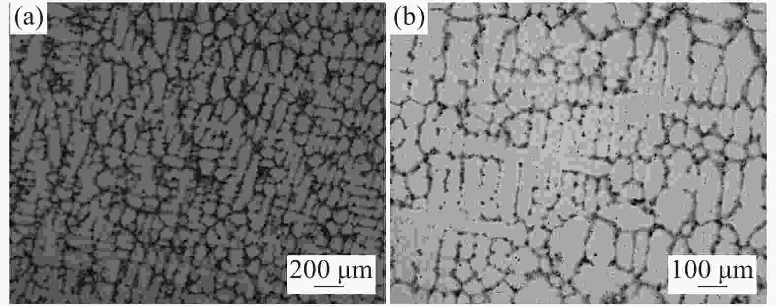 摘要: 通过OM和SEM观察了以常压和加压(2 MPa)两种凝固方式下的GH4065A铸锭显微组织,以分析加压对GH4065A铸锭凝固组织的影响。结果表明,常压下的铸态GH4065A有大量疏松缩孔,微观组织中主要析出相是γ’相,偏析最为严重的元素是Nb。在2 MPa下进行凝固,可以消除大量疏松缩孔,提高铸件的致密度,并使Nb元素的残余偏析指数大大降低;加压凝固可以使合金GH4065A的二次枝晶间距低于常压铸锭,这是由于加压使相变温度升高,从而增大熔体的相变驱动力,增加结晶数目,晶粒细化。上述结果表明加压凝固在高温合金中的巨大优势和应用前景,推广到更多的高温合金牌号,以发挥压力凝固的重要价值。Abstract: OM and SEM were used to observe the microstructure of GH4065A under two solidification modes: normal pressure and pressure (under 2 MPa) to analyze the effect of high pressure on the structure. The results show that the as-cast GH4065A structure under normal pressure has a large number of loose shrinkage cavities, the main precipitated phase in the microstructure is γ' phase, and the most severely segregated element is Nb. Solidification at 2 MPa can eliminate a large number of loose shrinkage cavities, increase the density of castings, and greatly reduce the residual segregation index of Nb element. At the same time, the pressure solidification can make the secondary dendrite spacing of alloy GH4065A lower than that of the normal pressure ingot. This is because the pressure increases the phase transition temperature, thereby increasing the phase transition driving force of the melt and refining the crystal grains. These results demonstrate that the great advantages and application prospects of pressurized solidification in superalloys, and it can be extended to other superalloy grades in order to exert the important value of pressurized solidification.