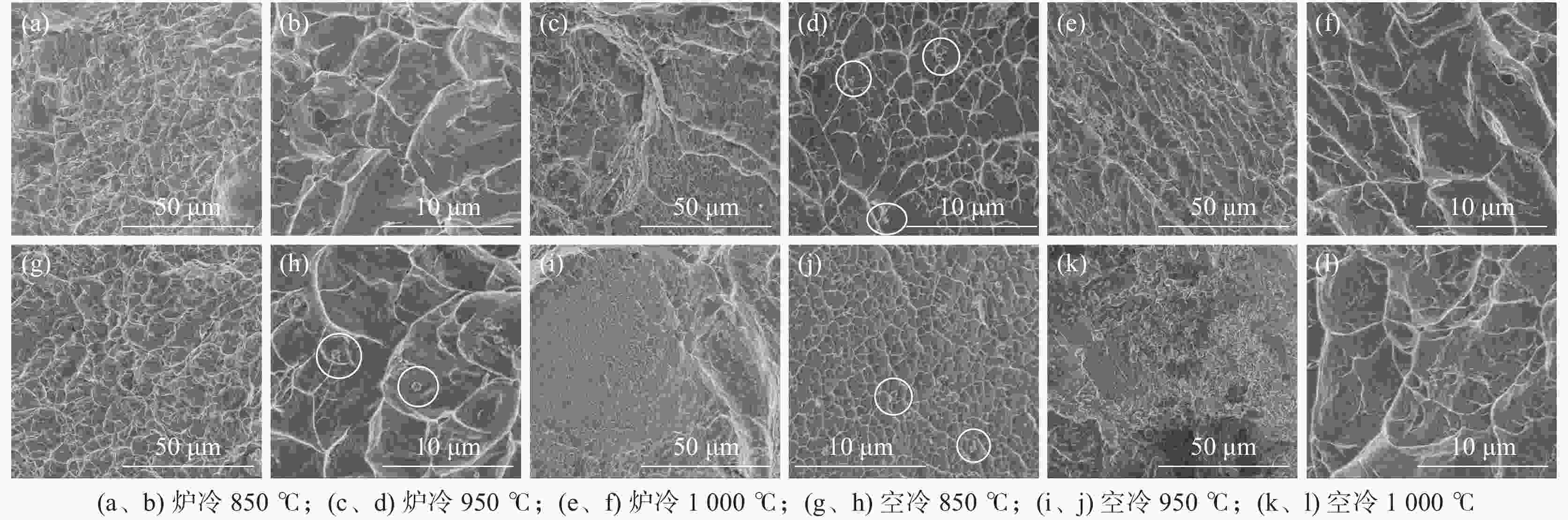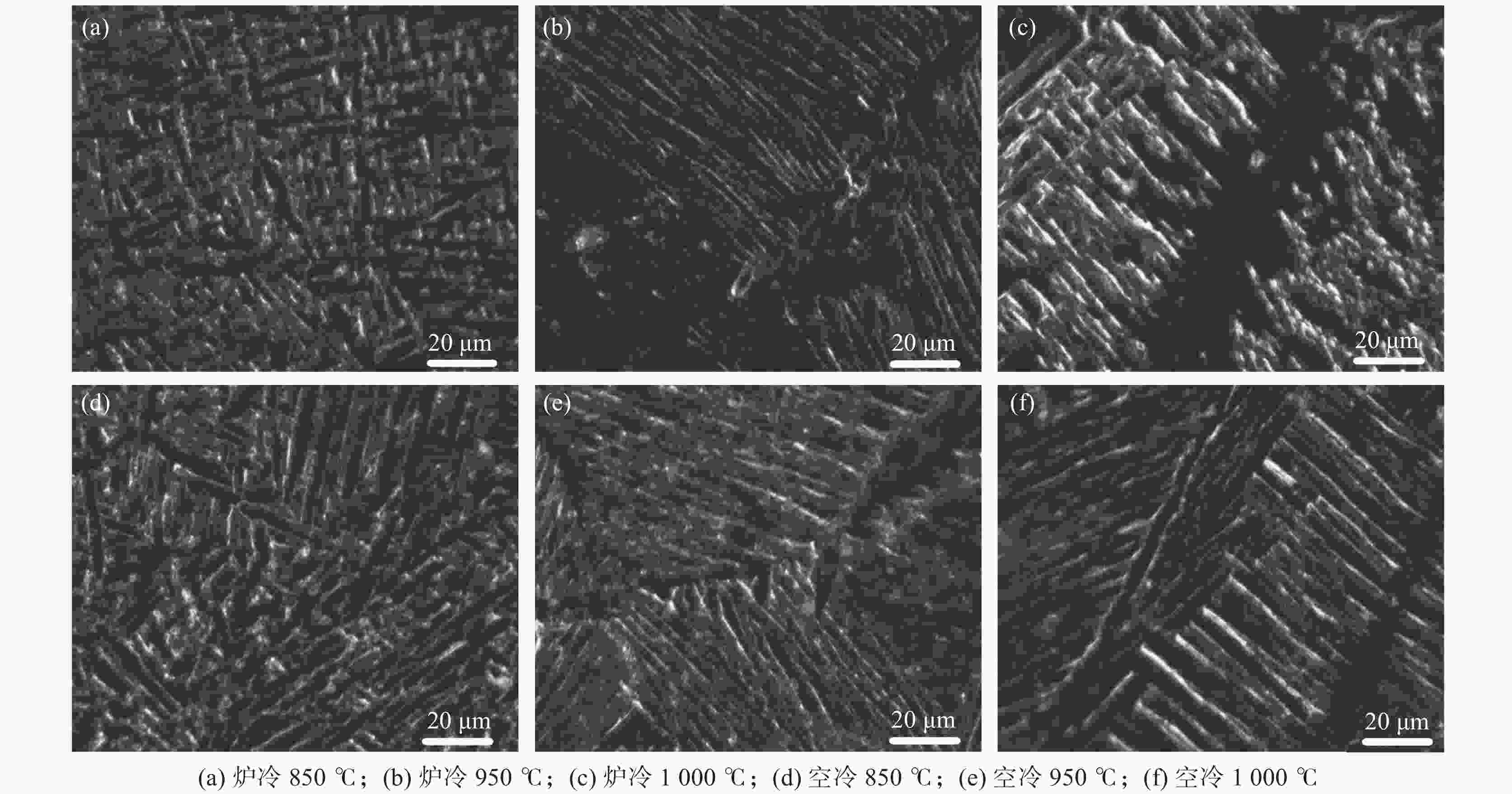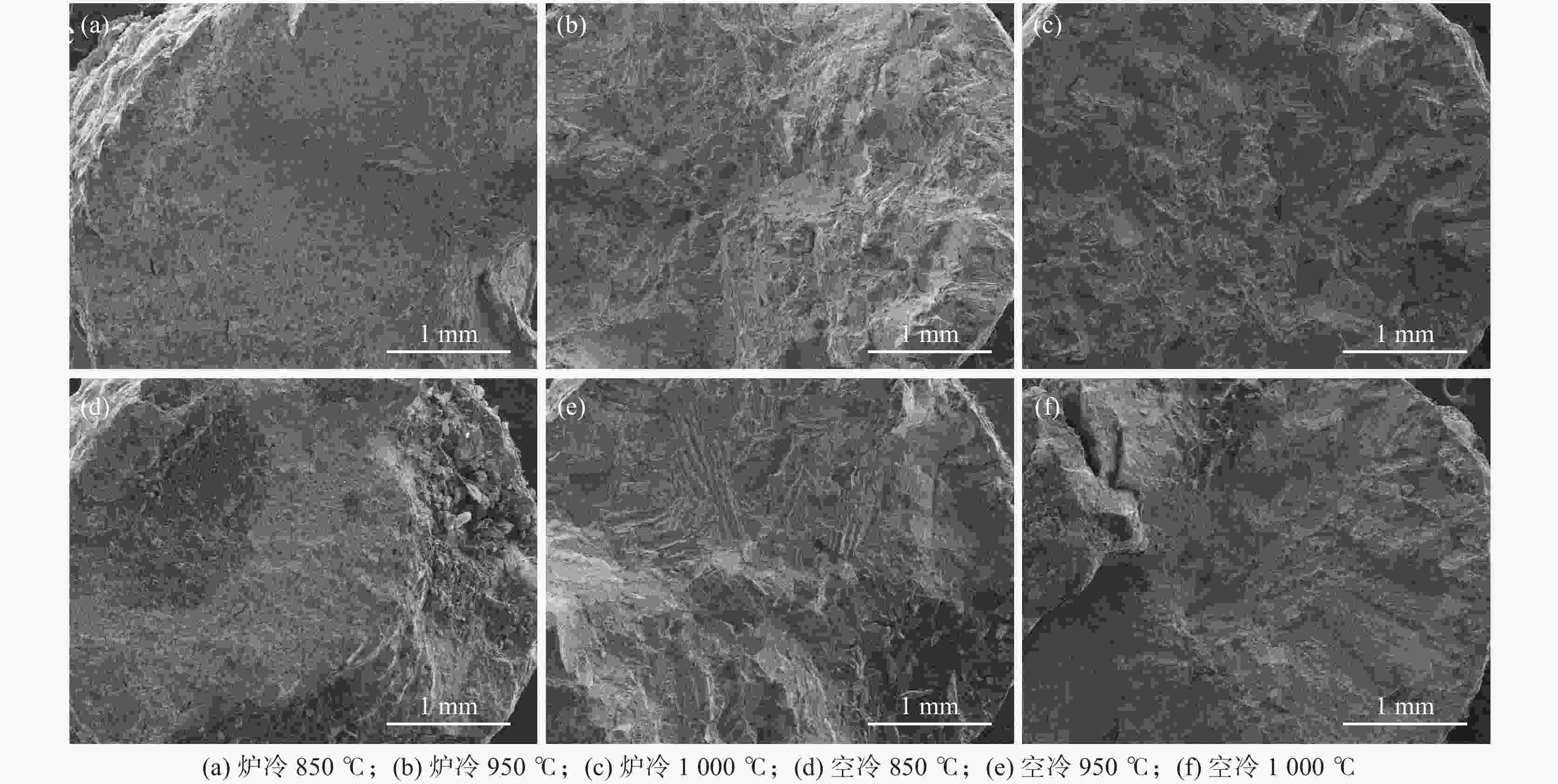 序号 加热温度/℃ 保温时间/h 冷却方式 1 850 1 空冷 2 950 1 空冷 3 1000 1 空冷 4 850 1 炉冷 5 950 1 炉冷 6 1000 1 炉冷 7 常态 常态 常态 表 3 拉伸试件室温拉伸力学性能