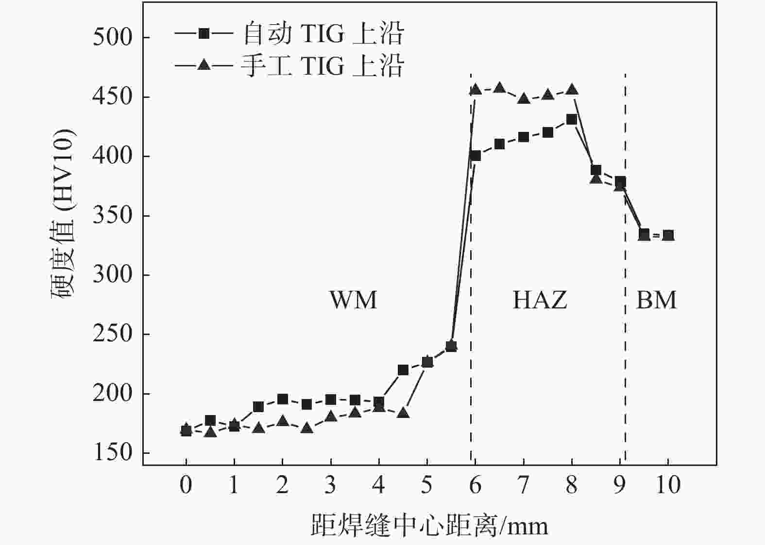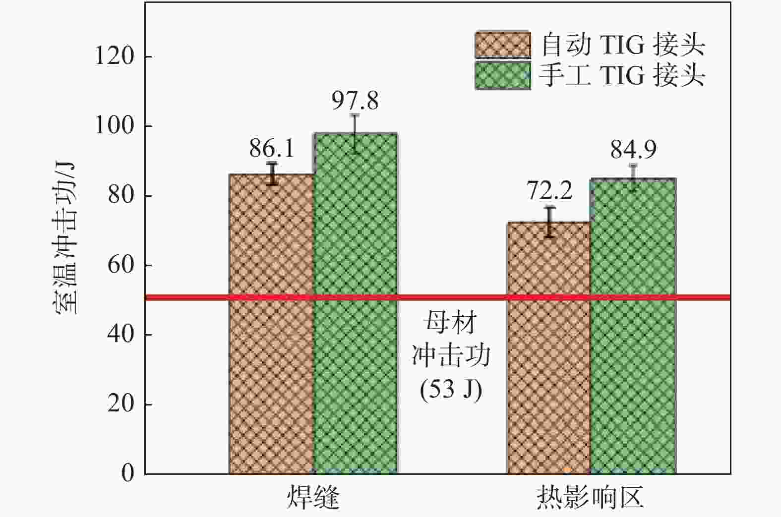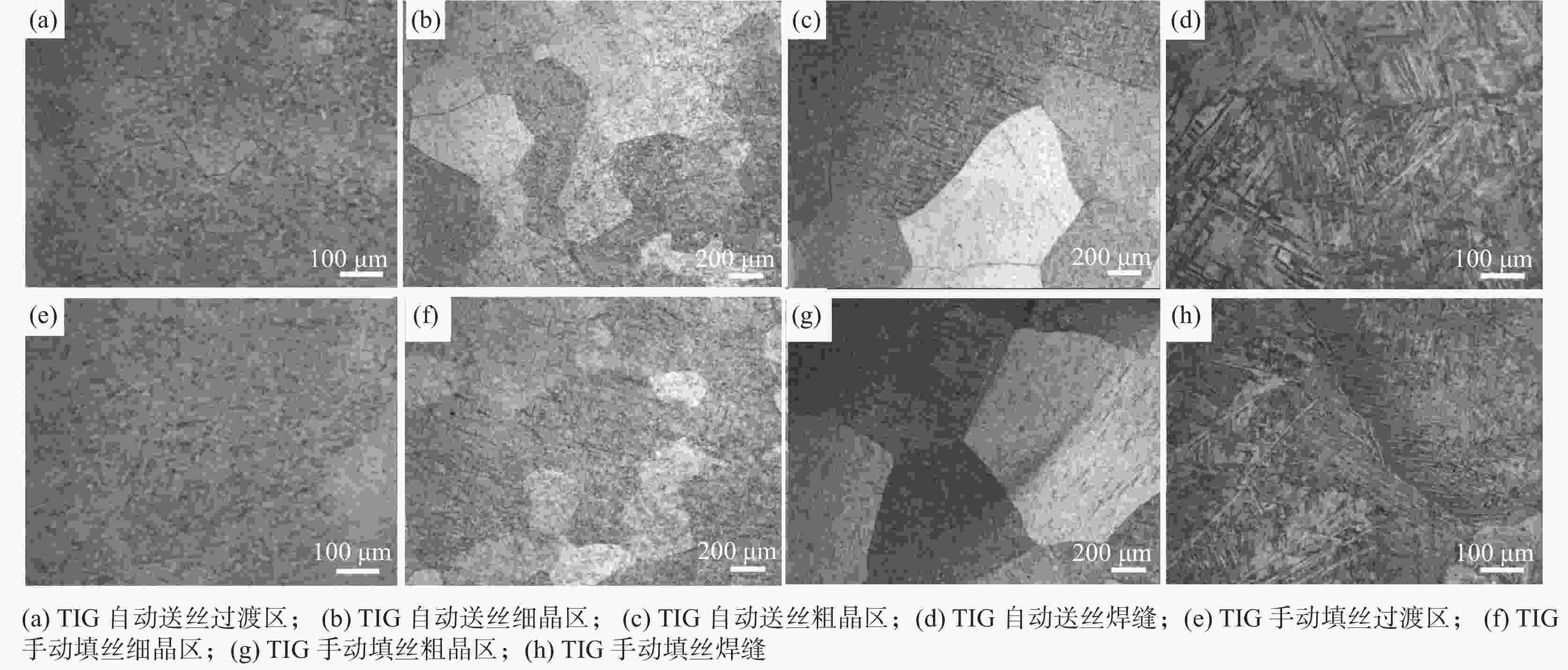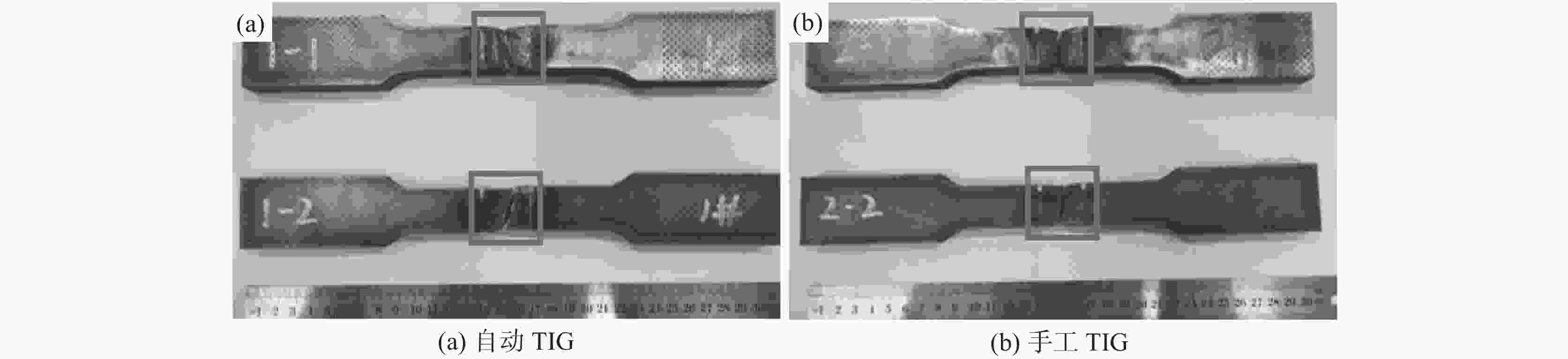 I/A U/V vf/(m·min−1) vw/(m·min−1) 自动TIG 122 9.6 0.36 0.26 手工TIG 80~110 9.6 表 2 自动TIG和手工TIG焊拉伸性能