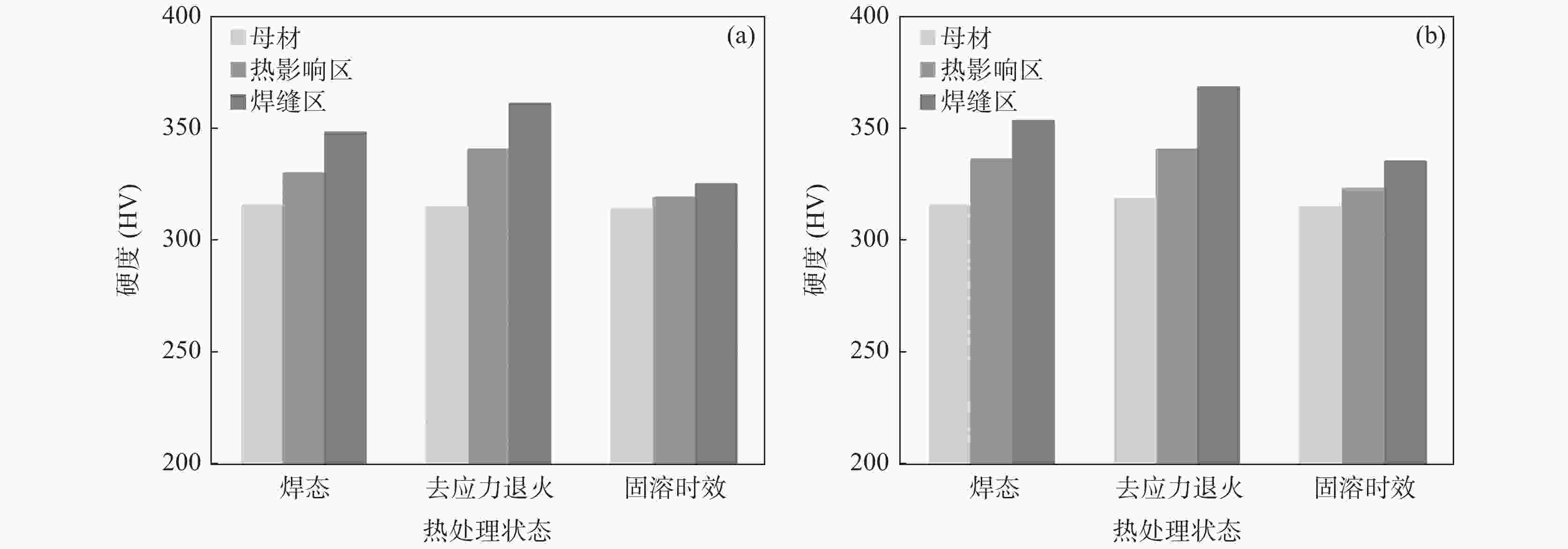 图  11  焊态、SRA和STA条件下三个不同区域的平均硬度