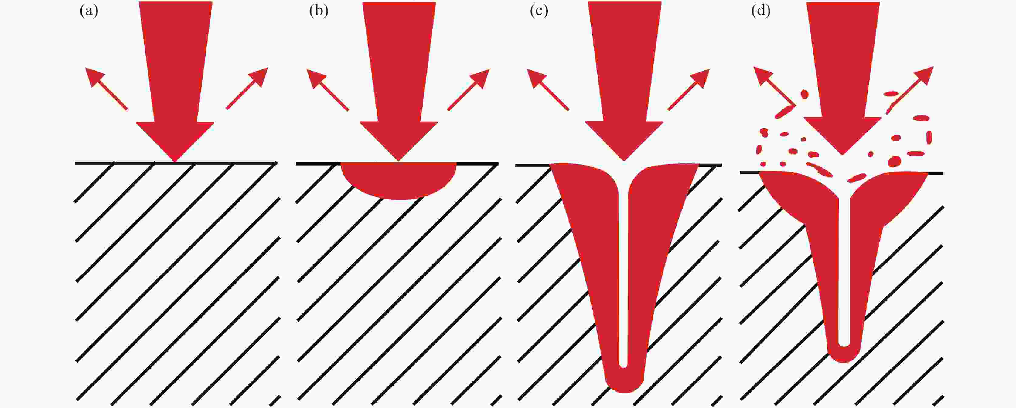 (a) 固态加热; (b) 表面熔化; (c) 匙孔效应; (d) 等离子体屏蔽