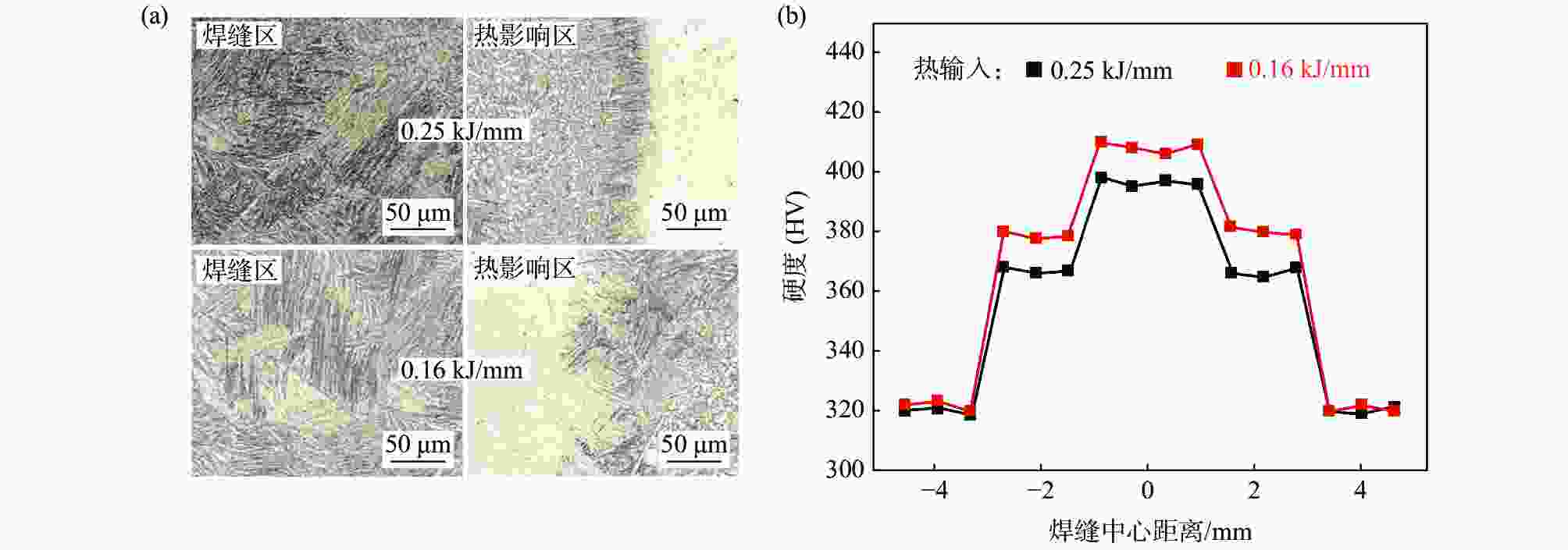 图  8  不同热输入下焊接接头显微组织及维氏硬度变化[51]