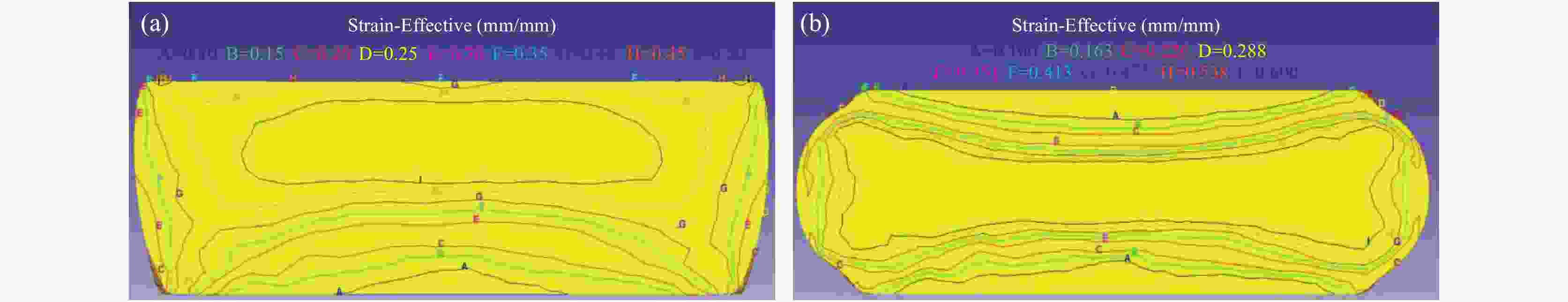 图  2  TA15钛合金不同锻造设备条件Deform模拟等效应变分布