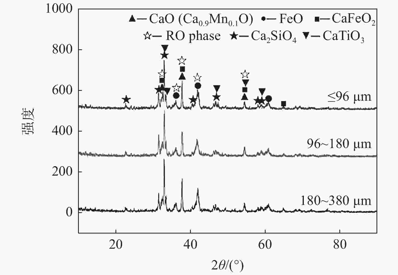 编号 粒度/μm w/% O Ca Fe Si Mg Mn Ti C P V 试样1 180 ~ 380 39.18 28.89 14.33 3.87 3.32 3.18 2.07 1.94 1.12 1.01 试样2 96 ~ 180 37.20 28.76 15.57 3.98 3.78 3.72 1.91 1.70 1.29 1.03 试样3 0 ~ 96 37.57 28.64 15.45 3.93 3.74 3.67 1.92 1.71 1.28 1.00 a只显示含量高于1%的元素。 -