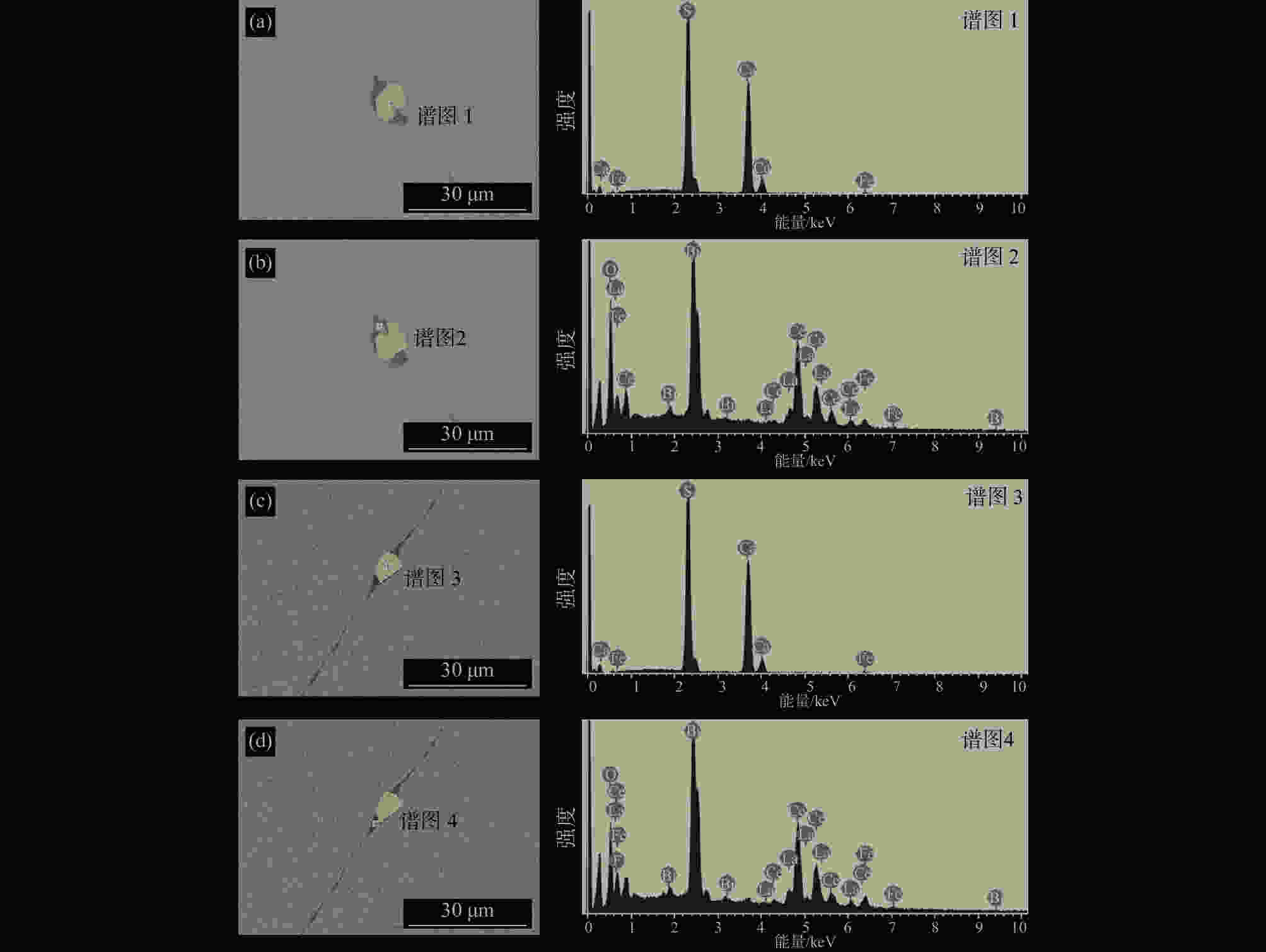 Figure  3.  SEM observation and energy pattern of nonmetallic inclusion in 2# steel