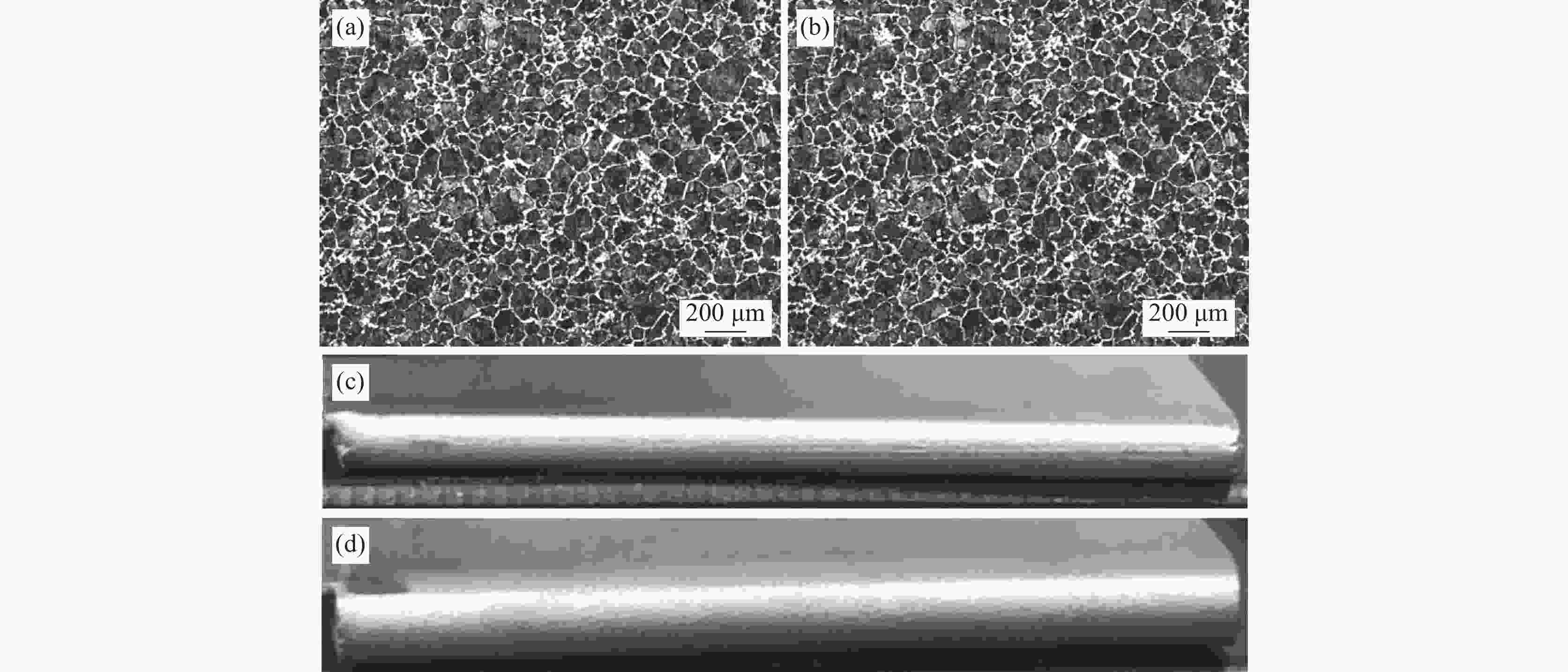 (a) 1#钢铸坯;(b) 2#钢铸坯;(c) 1#钢热轧板;(d) 2#钢热轧板