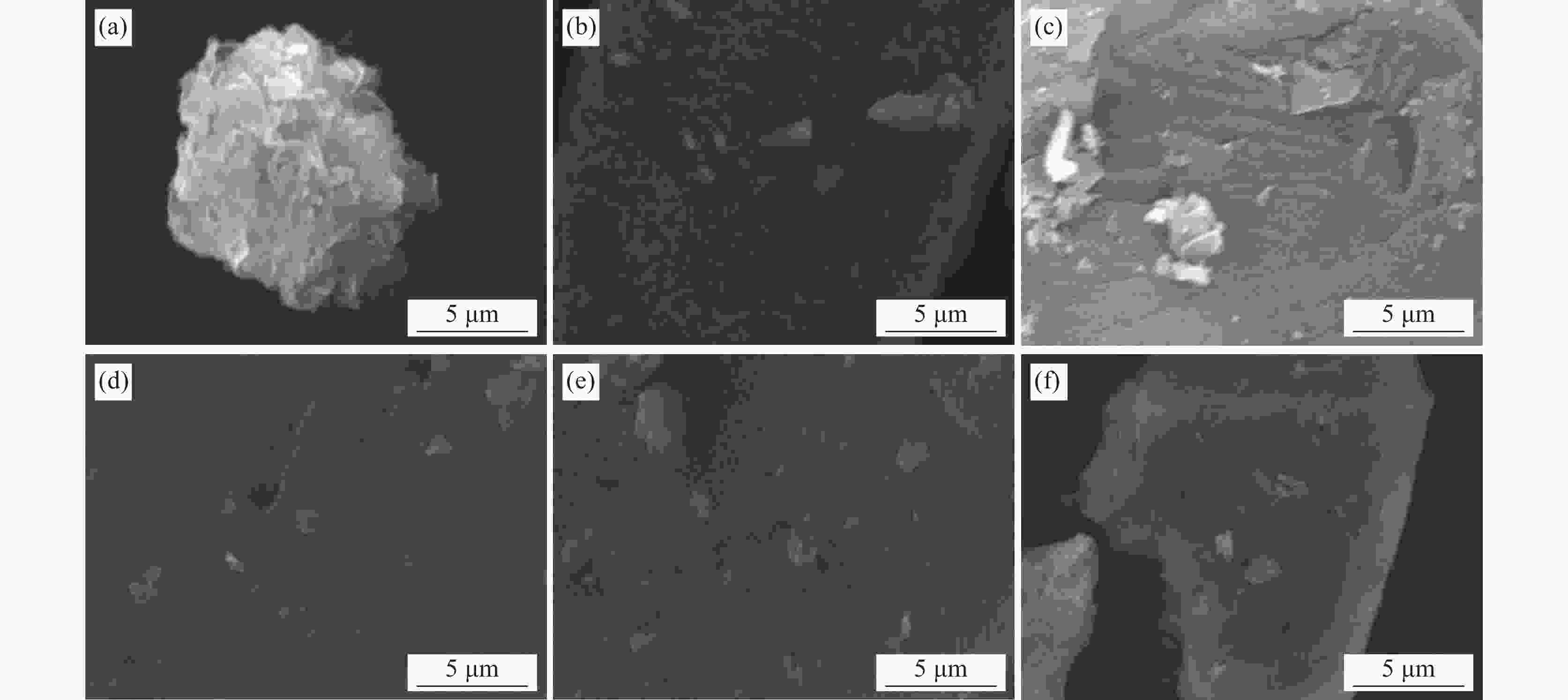 (a) 煅烧后膨润土;(b) 0.333 g/L;(c) 1 g/L;(d) 1.667 g/L;(e) 2.5 g/L;(f) 3.333 g/L