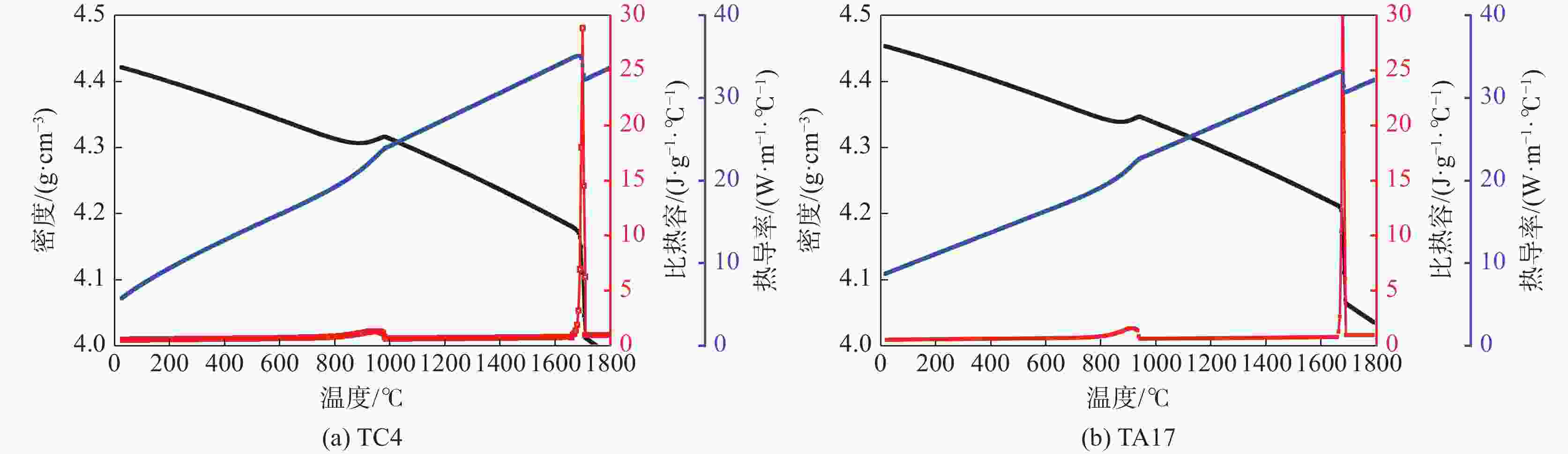 Table 2. Comparison of thermophysical parameters of titanium alloys in the temperature range of 25~1800 ℃
