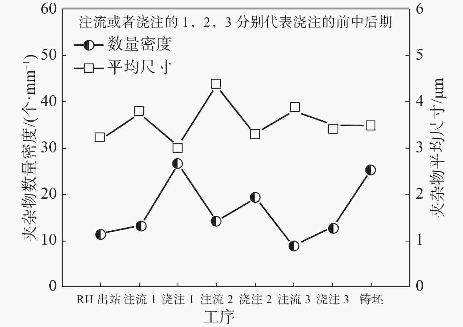 图  2  连铸过程钢中夹杂物数量密度和平均尺寸变化