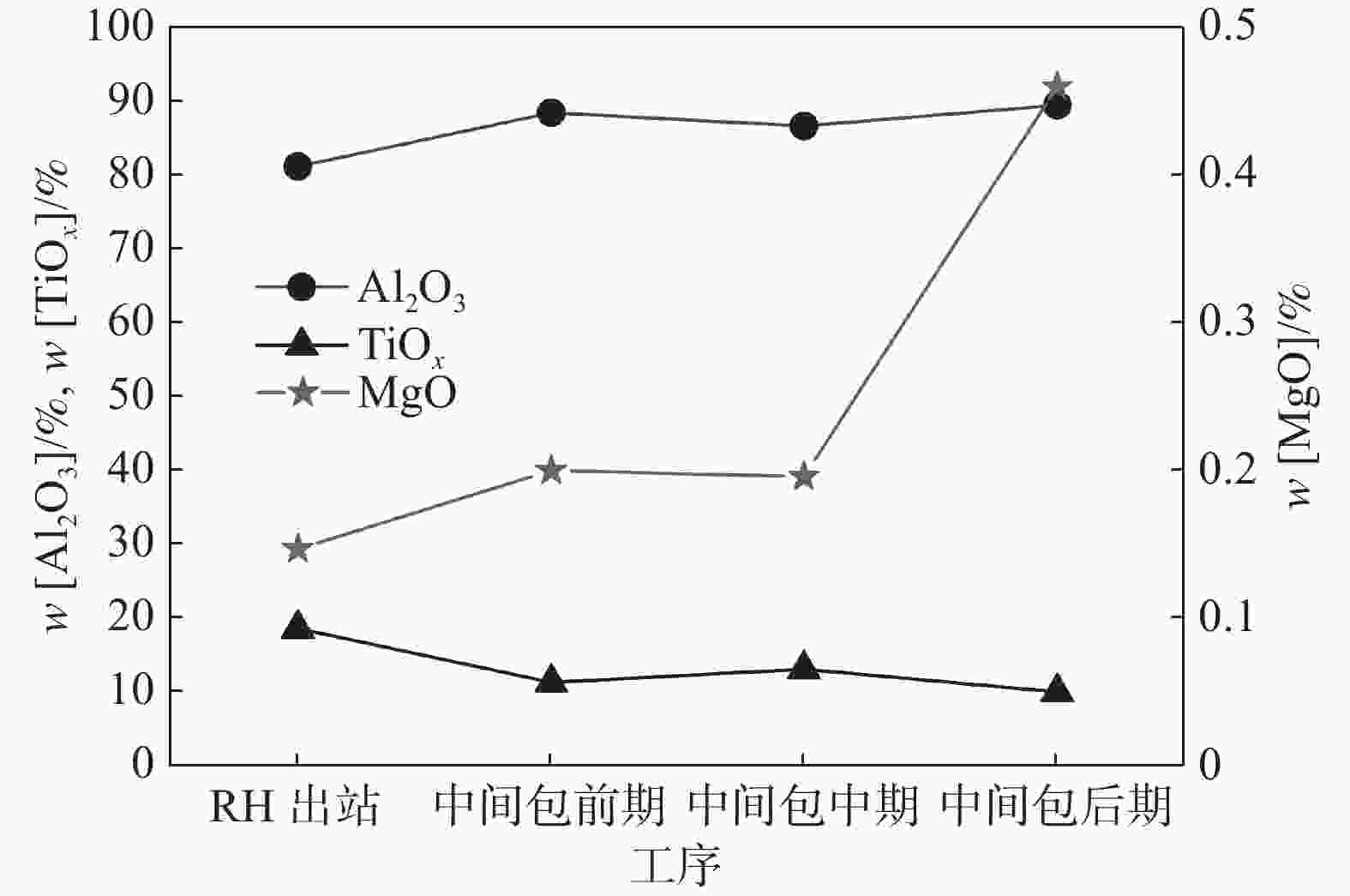 表  2  连铸中间包钢液中不同类型夹杂物的比例