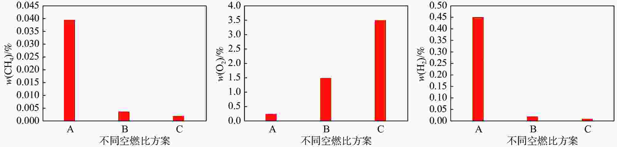 % CO2 CmHn O2 CO H2 9.4 0.8 0.2 17.8 26.1 表 2 加热炉不同情况的空燃比