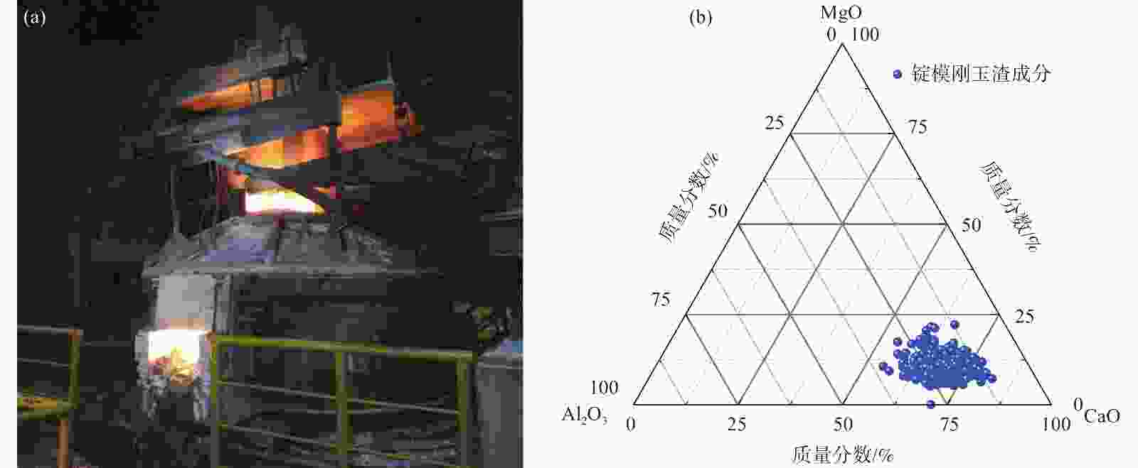 物料名称 化学元素成分/% 现场9+1配料模式下平均产出/(kg·炉−1) P MgO CaO Al2O3 成品FeV50 0.062 10156 锭模渣 <0.005 21.92 12.67 62.61 3500 渣盆渣 <0.005 10.40 24.34 62.30 7500 锅巴渣 0.016 64.32 4.71 14.58 270 黑边渣 0.050 12.57 2.92 27.31 23 旋风除尘灰 0.034 16.64 3.14 5.98 20 布袋除尘灰 0.028 35.54 1.68 5.88 25 表 4 现场输出物料中的平均P元素总量