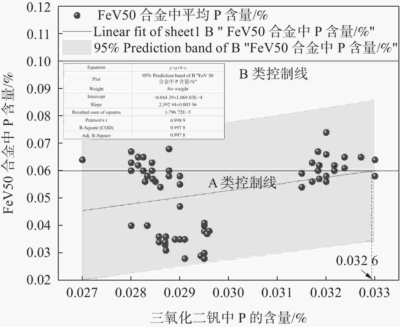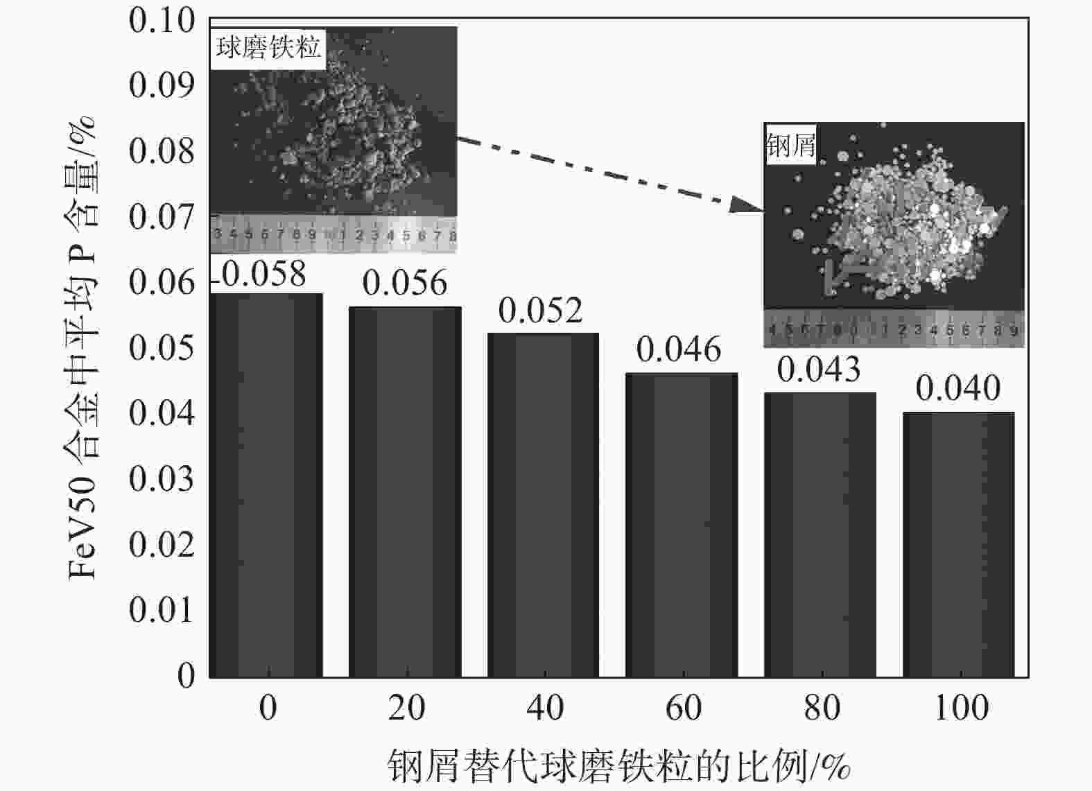 物料名称 总P/(kg·炉−1) 三氧化二钒 4.14 片钒 0.30 球磨铁粒 2.60 耐火材料 0.31 总计 7.35 表 3 现场输出物料中的P元素含量及平均物料产出情况