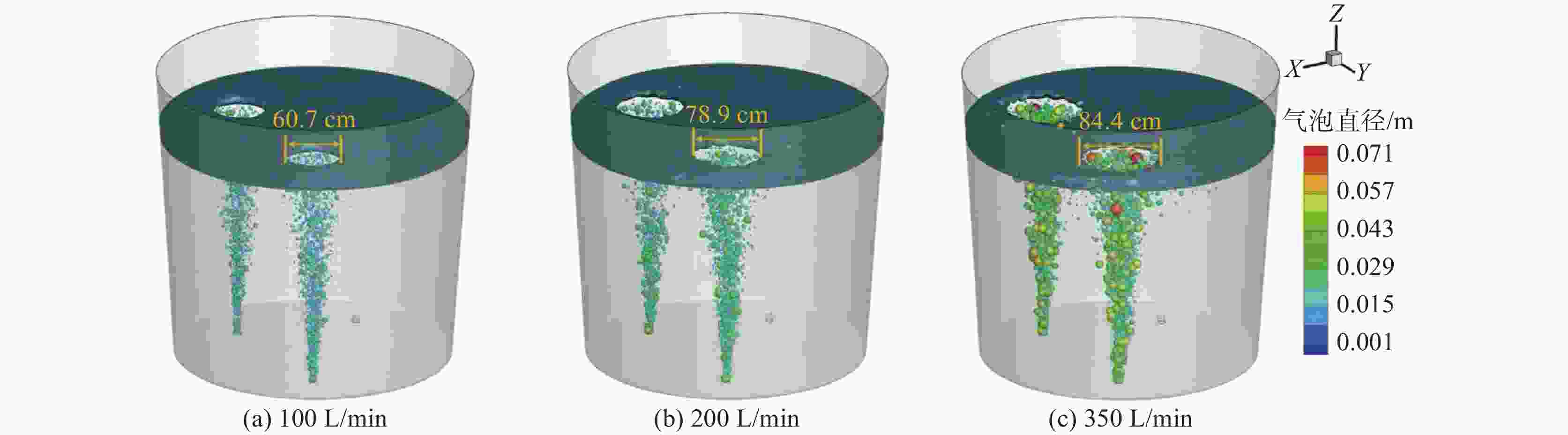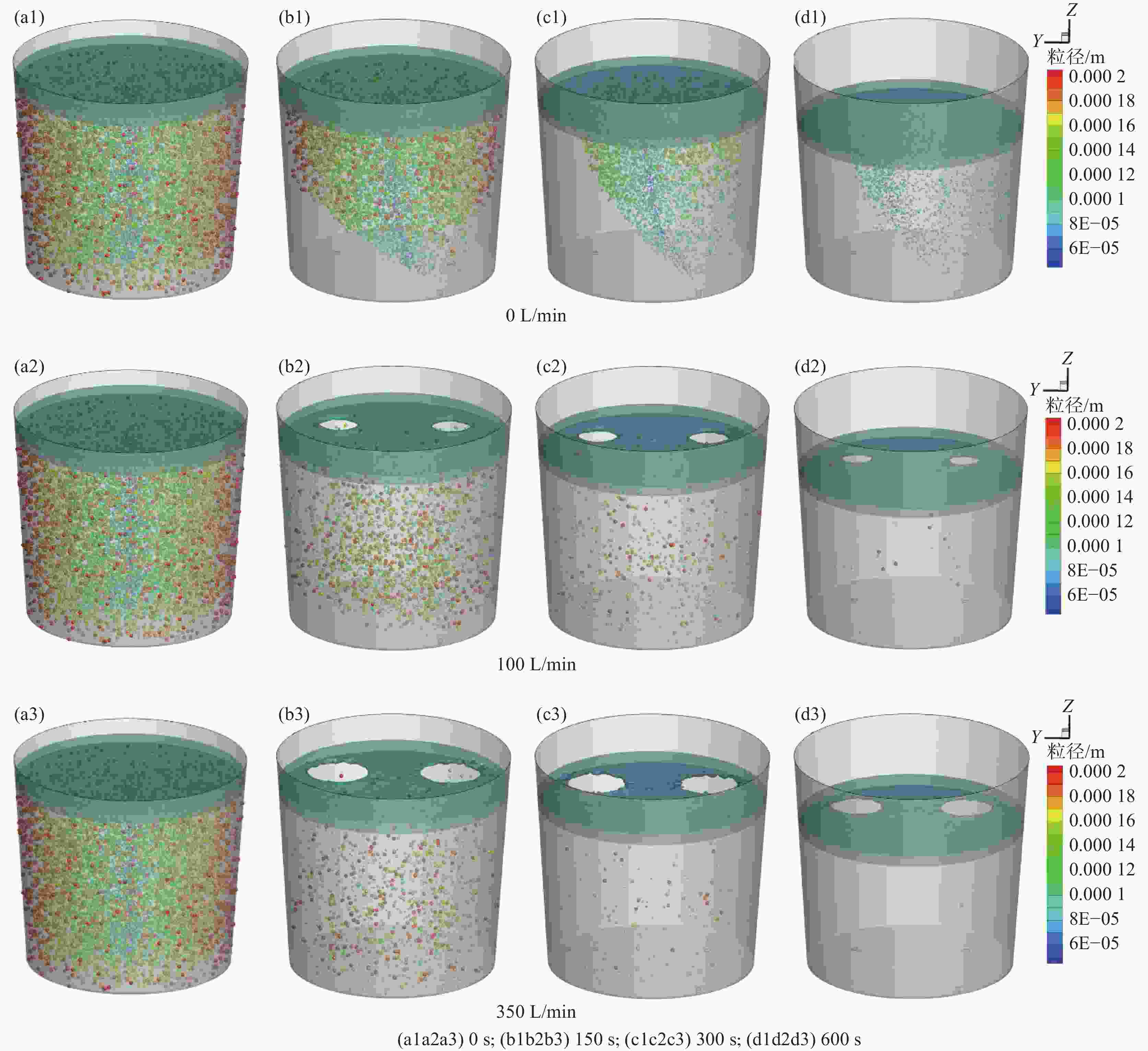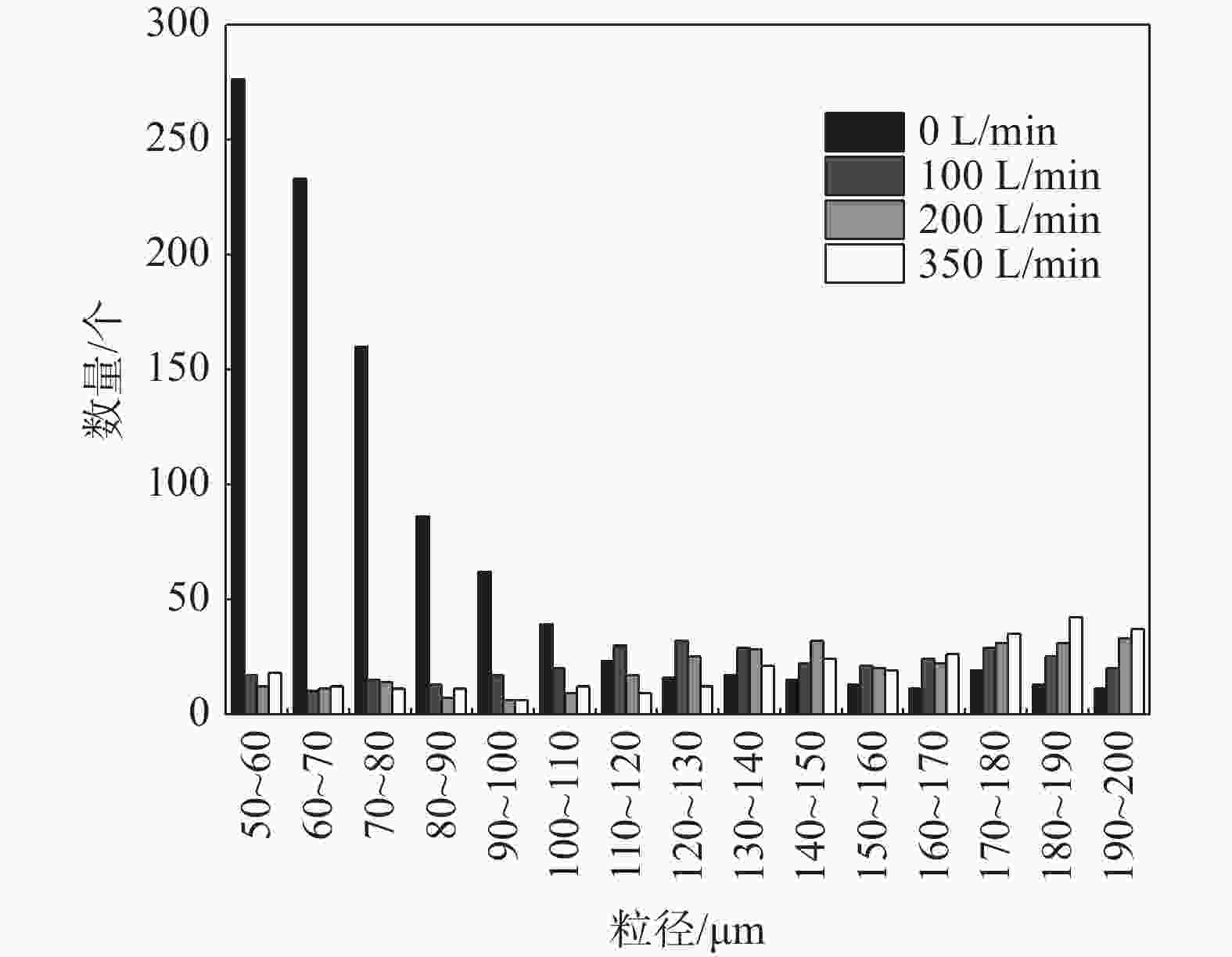 密度/(kg.m−3) 黏度/(Pa·s) 表面张力/(N·m−1) 拉速/(m·min−1) 吹氩流量/(L·min−1) 结晶器尺寸/m 空气 氩气 钢液 渣相 夹杂物 空气 钢液 渣相 钢/渣 钢/气 渣/气 1.225 1.6228 7020 3500 3500 1.79×10−5 0.0055 0.1 1.15 1.82 0.58 1.0 0, 100, 200, 350, 500 0.23×1.6 -