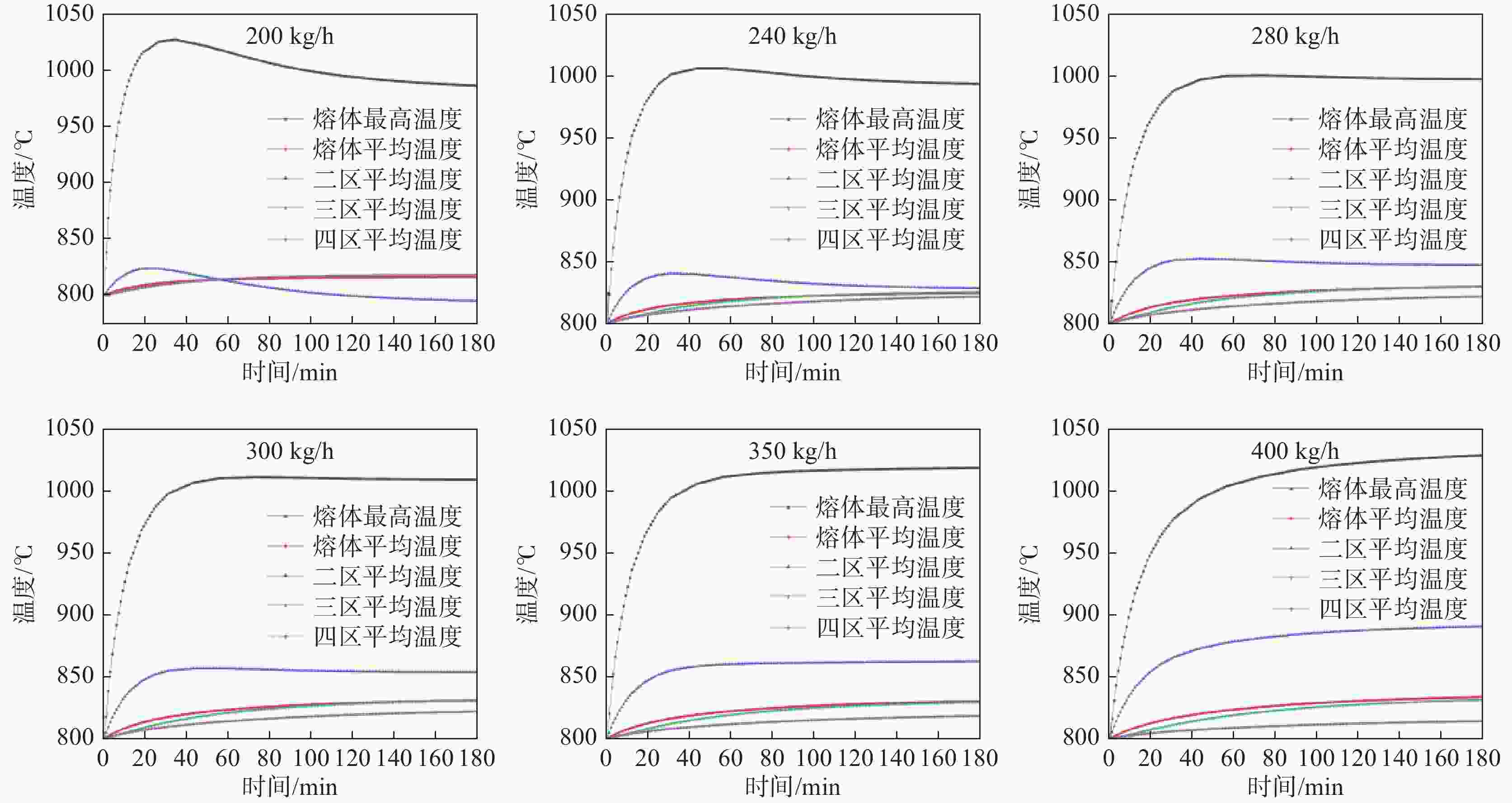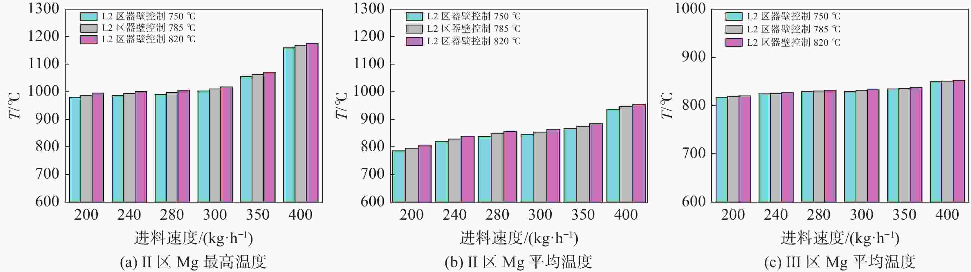 进料速度/(kg·h−1) Ⅱ区最高温度/℃ Ⅲ区平均温度/℃ 750 ℃ 785 ℃ 820 ℃ 750 ℃ 785 ℃ 820 ℃ 200 978.5 986.5 994.6 785.89 794.9 804.0 240 986.5 994.2 1001.9 819.77 828.7 837.7 280 990.6 998.1 1005.5 838.57 847.5 856.4 300 1002.0 1009.9 1017.5 845.09 854.0 862.9 350 1055.6 1063.2 1070.9 866.26 875.2 884.1 400 1159.8 1167.4 1175.1 936.83 945.8 954.8 -