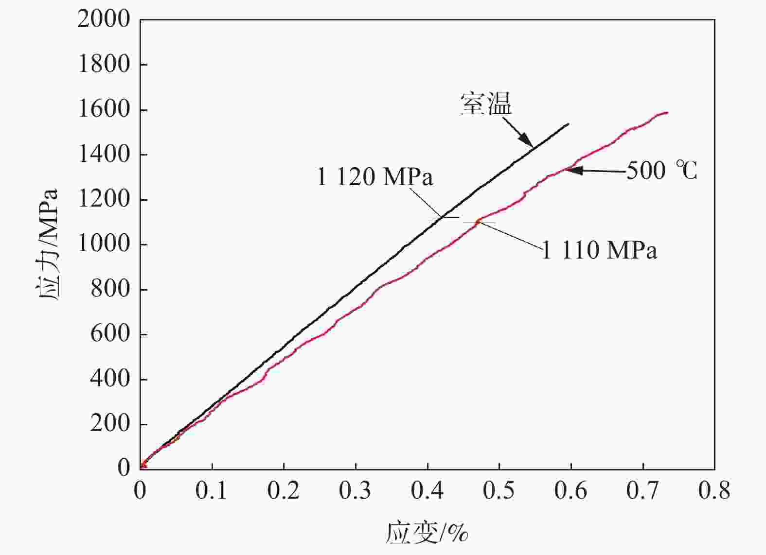 材料 温度/℃ 试样数量/支 平均抗拉强度/MPa TC11 25 3 973±19 TC11 500 3 667±18 SiCf/TC11 25 4 1530±16 SiCf/TC11 500 7 1553±18 -