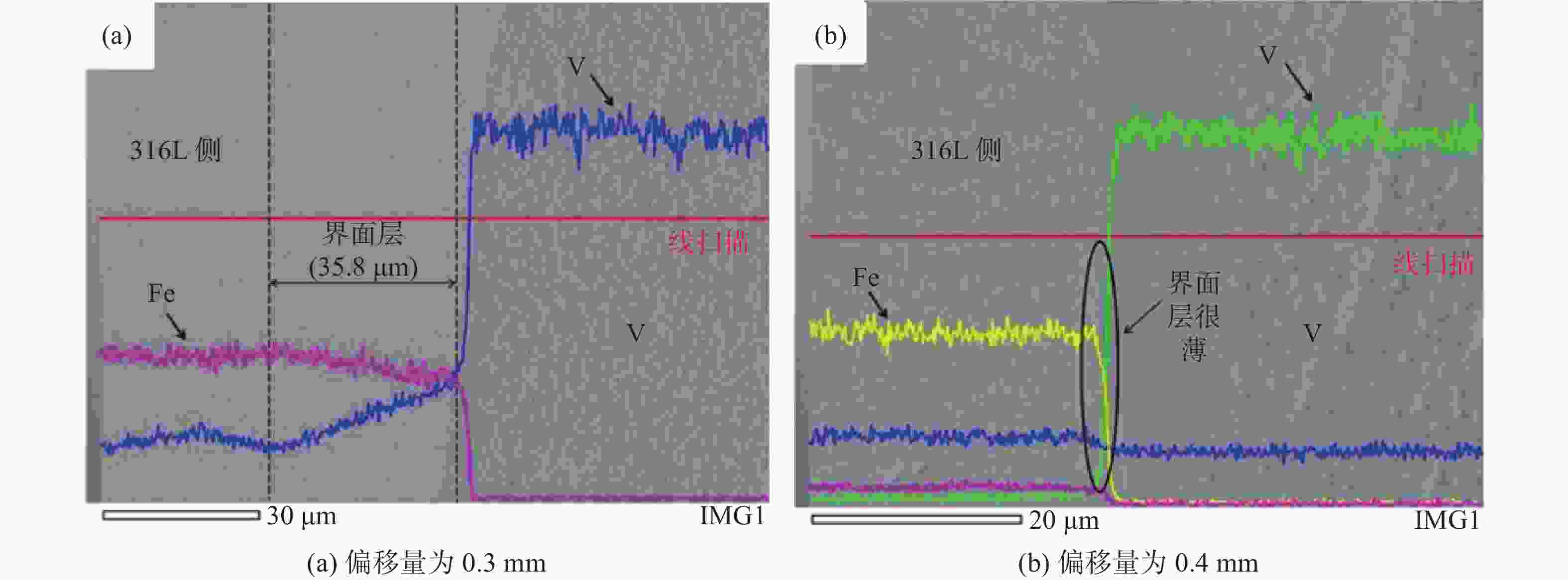 % 材料 Fe C Si Ni Cr Mn Mo Al V Ti TC4 0.3 0.1 0.15 0.015 5.5 4.5 余量 316L 余量 ≤0.03 ≤1.0 10.0~14.0 16.0~18.0 ≤2.0 2.0~3.0 表 2 不锈钢/钒焊接界面的元素含量