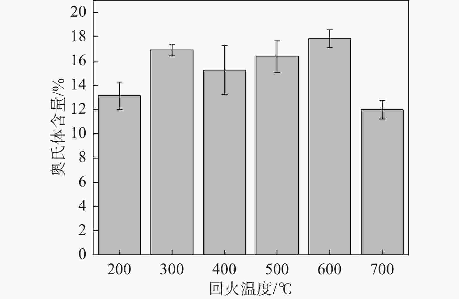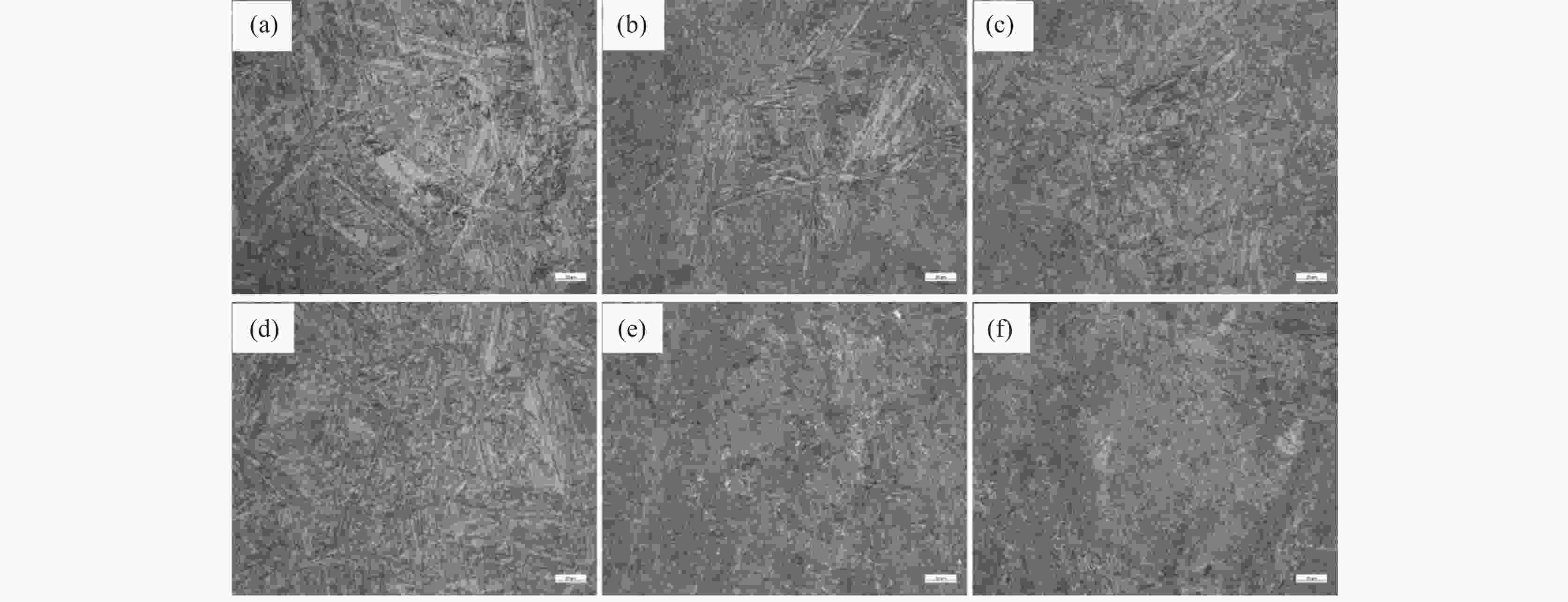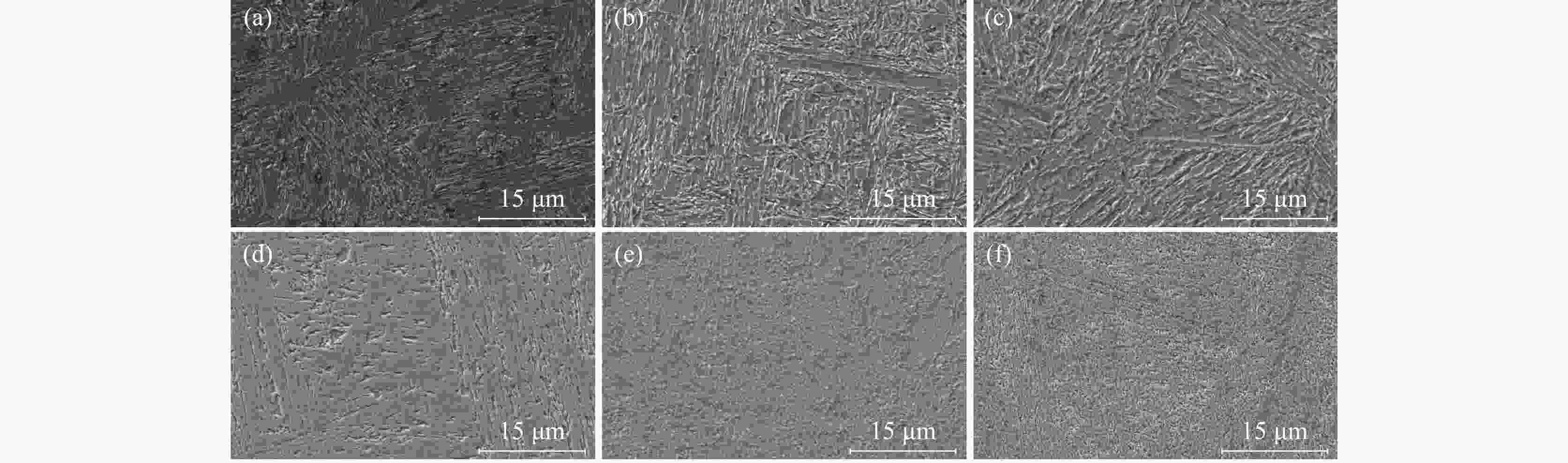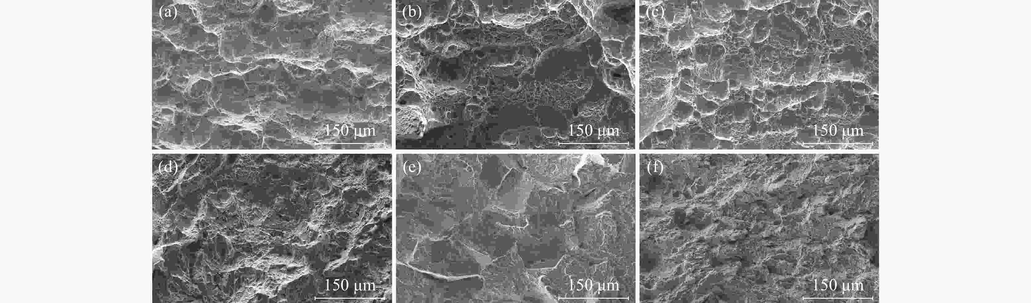 摘要: 以低碳高合金轴承钢为研究对象,通过OM、SEM、XRD等手段,研究了回火温度对显微组织和冲击韧性的影响。结果表明,低碳高合金轴承钢分别经过200、300、400、500 ℃回火处理后,金相显微组织均为回火马氏体+残余奥氏体;600 ℃和700 ℃回火处理后,马氏体组织发生退化,金相显微组织均为回火索氏体+残余奥氏体。低碳高合金轴承钢在200~700 ℃温度区间回火处理后,300 ℃回火冲击韧性最高,600 ℃回火冲击韧性最低,回火温度不宜超过500 ℃。低碳高合金轴承钢在200~500 ℃回火后断口特征均为准解离断裂,600 ℃和700 ℃回火表现为明显的脆性断裂特征。Abstract: The effect of tempering temperature on microstructure and impact toughness of low-carbon, high-alloy bearing steel was studied by OM, SEM, and XRD. The results show that the metallographic microstructure for the low-carbon, high-alloy bearing steel consisted of tempered martensite and retained austenite when the tempering temperature is 200, 300, 400, 500 ℃, respectively. Furthermore, martensite degradation occurs, and the microstructure consists of tempered soxbite and retained austenite when the tempering temperature increases to 600 ℃ and 700 ℃. After tempering at 200-700 ℃, the impact toughness of low-carbon, high-alloy bearing steel tempered at 300 ℃ is the highest, that tempered at 600 ℃ is the lowest, and the tempering temperature should not exceed 500 ℃. The fracture characteristics of low-carbon, high-alloy bearing steel after tempering at 200-500 ℃ are quasi-dissociative fractures, and the tempering at 600 ℃ and 700 ℃ are brittle fractures.