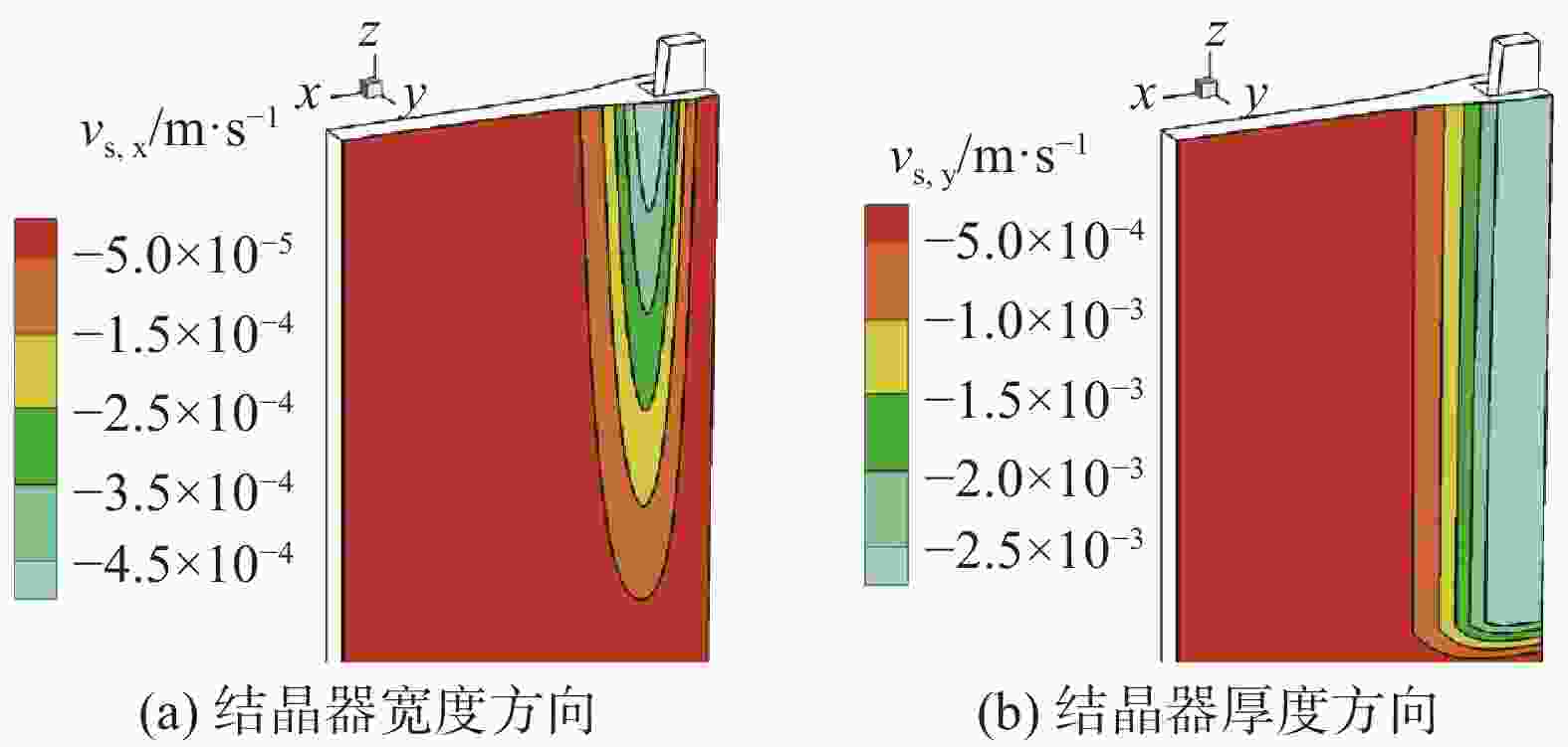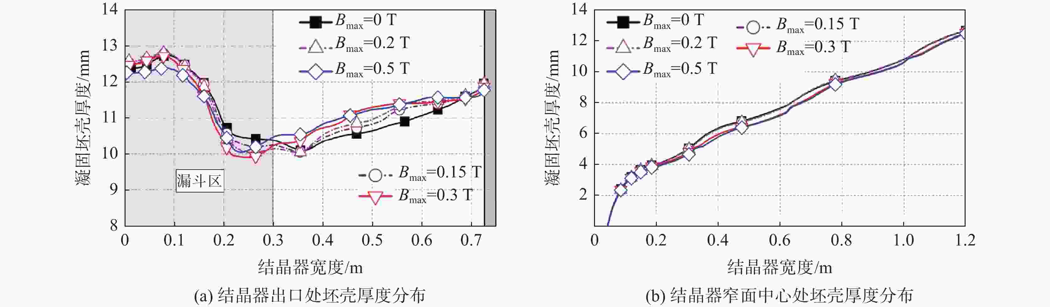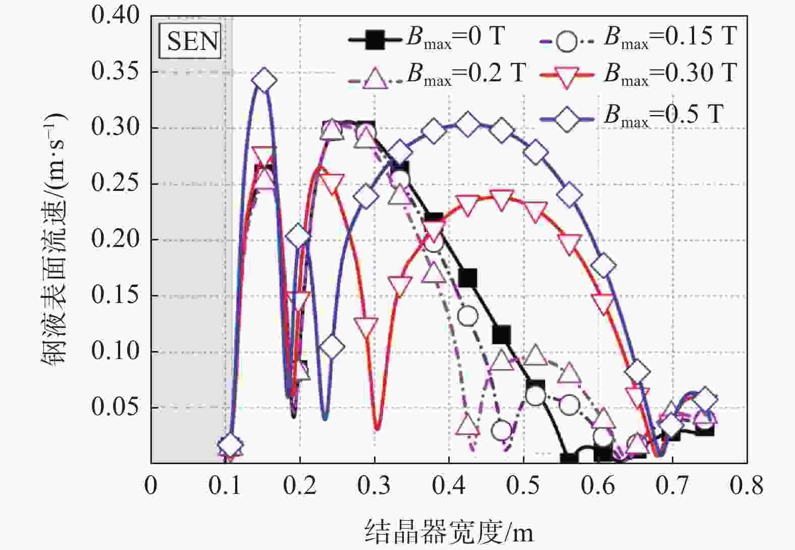 [1] Yang Yadi, Zhao Jing, Cui Jianzheng. Numerical simulation on interfacial behavior and mixing phenomena in three-phase argon-stirred ladles[J]. Iron Steel Vanadium Titanium, 2021,42(5):138−148. (杨亚迪, 赵晶, 崔剑征. 三相氩气搅拌钢包内界面行为及混合现象的数值模拟[J]. 钢铁钒钛, 2021,42(5):138−148. doi: 10.7513/j.issn.1004-7638.2021.05.022Yang Yadi, Zhao Jing, Cui Jianzheng. Numerical simulation on interfacial behavior and mixing phenomena in three-phase argon-stirred ladles[J]. Iron Steel Vanadium Titanium, 2021, 42(5): 138-148. doi: 10.7513/j.issn.1004-7638.2021.05.022 [2] Vakhrushev A, Wu M, Ludwig A, et al. Numerical investigation of shell formation in thin slab casting of funnel-type mold[J]. Metall. Mater. Trans. B, 2014,45(3):1024−1037. doi: 10.1007/s11663-014-0030-2 [3] Liu H, Yang C, Zhang H, et al. Numerical simulation of fluid flow and thermal characteristics of thin slab in the funnel-type molds of two casters[J]. ISIJ Int., 2011,51(3):392−401. doi: 10.2355/isijinternational.51.392 [4] Zhang L S, Zhang X F, Wang B, et al. Numerical analysis of the influences of operational parameters on the braking effect of EMBr in a CSP funnel-type mold[J]. Metall. Mater. Trans. B, 2014,45(1):295−306. doi: 10.1007/s11663-013-9948-z [5] Tian X Y, Li B W, He J C. Electromagnetic brake effects on the funnel shape mold of a thin slab caster based on a new type magnet[J]. Metall. Mater. Trans. B, 2009,40(4):596−604. doi: 10.1007/s11663-009-9246-y [6] Thunman M, Eckert S, Hennig O. Study on the formation of open-eye and slag entrainment in gas stirred ladle[J]. Steel Res. Int., 2007,78(12):849−856. doi: 10.1002/srin.200706297 [7] Hwang Y S, Cha P R, Nam H S, et al. Numerical analysis of the influences of operational parameters on the fluid flow and meniscus shape in slab caster with EMBr[J]. ISIJ Int., 1997,37(7):659−667. doi: 10.2355/isijinternational.37.659 [8] Zhu Miaoyong, Cai Zhaozhen. Heat transfer behavior and homogenous solidification control for high-speed continuous casting slab mold[J]. Chinese Journal of Engineering, 2022,44(4):703−711. (朱苗勇, 蔡兆镇. 高速连铸结晶器内凝固传热行为及其均匀性控制[J]. 工程科学学报, 2022,44(4):703−711. doi: 10.3321/j.issn.1001-053X.2022.4.bjkjdxxb202204021Zhu Miaoyong, Cai Zhaozhen. Heat transfer behavior and homogenous solidification control for high-speed continuous casting slab mold[J]. Chinese Journal of Engineering, 2022, 44(4): 703-711. doi: 10.3321/j.issn.1001-053X.2022.4.bjkjdxxb202204021 [9] Zhu Miaoyong. Some considerations for new generation of high-efficiency continuous casting technology development[J]. Iron and Steel, 2019,54(8):21−36. (朱苗勇. 新一代高效连铸技术发展思考[J]. 钢铁, 2019,54(8):21−36. doi: 10.13228/j.boyuan.issn0449-749x.20190213Zhu Miaoyong. Some considerations for new generation of high-efficiency continuous casting technology development[J]. Iron and steel, 2019, 54(8): 21-36. doi: 10.13228/j.boyuan.issn0449-749x.20190213 [10] Liu Z, Vakhrushev A, Wu M, et al. Effect of an electrically-conducting wall on transient magnetohydrodynamic flow in a continuous-casting mold with an electromagnetic brake[J]. Metals, 2018,8(8):609−623. doi: 10.3390/met8080609 [11] Schurmann D, Glavinic´ I, Willers B, et al. Impact of the electromagnetic brake position on the flow structure in a slab continuous casting mold: An experimental parameter study[J]. Metall. Mater. Trans. B, 2020,51(1):61−78. doi: 10.1007/s11663-019-01721-x [12] Wang Y F, Zhang L F. Fluid flow-related transport phenomena in steel slab continuous casting strands under electromagnetic brake[J]. Metall. Mater. Trans. B, 2011,42(6):1319−1351. doi: 10.1007/s11663-011-9554-x [13] Jin K, Vanka S P, Thomas B G. Large eddy simulations of the effects of EMBr and SEN submergence depth on turbulent flow in the mold region of a steel caster[J]. Metall. Mater. Trans. B, 2017,48(1):162−178. doi: 10.1007/s11663-016-0801-z [14] Sarkar S, Singh V, Ajmani S K, et al. Effect of double ruler magnetic field in controlling meniscus flow and turbulence intensity distribution in continuous slab casting mold[J]. ISIJ Int., 2016,56(12):2181−2190. doi: 10.2355/isijinternational.ISIJINT-2016-313 [15] Thomas B G, Singh R, Vanka S P, et al. Effect of single-ruler electromagnetic braking (EMBr) location on transient flow in continuous casting[J]. JMSP, 2015,15(1):93−104. [16] Yin Y B, Zhang J M. Mathematical modeling on transient multiphase flow and slag entrainment in continuously casting mold with double-ruler EMBr through LES+VOF+DPM method[J]. ISIJ Int., 2021,61(3):853−864. doi: 10.2355/isijinternational.ISIJINT-2020-592 [17] Sarkar S, Singh V, Ajmani S K, et al. Effect of argon injection in meniscus flow and turbulence intensity distribution in continuous slab casting mold under the influence of double ruler magnetic field[J]. ISIJ Int., 2018,58(1):68−77. doi: 10.2355/isijinternational.ISIJINT-2017-448 [18] Hernandez S G, Guzman C H G, Davila R M, et al. Modeling study of EMBr effects on the detrimental dynamic distortion phenomenon in a funnel thin slab mold[J]. Crystals, 2020,10(11):958−976. doi: 10.3390/cryst10110958 [19] Li Z, Zhang L T, Ma D Z, et al. A narrative review: the electromagnetic field arrangement and the “braking” effect of electromagnetic brake (EMBr) technique in slab continuous casting[J]. Metall Res Technol., 2021,118(2):218−234. doi: 10.1051/metal/2021016 [20] Cai Zhaozhen, Zhu Miaoyong. Simulation of thermal behavior during steel solidification in slab continuous casting mold[J]. Acta Metallurgica Sinica, 2011,47(6):678−687. (蔡兆镇, 朱苗勇. 板坯连铸结晶器内钢凝固过程热行为研究[J]. 金属学报, 2011,47(6):678−687.Cai Zhaozhen, Zhu Miaoyong. Simulation of thermal behavior during steel solidification in slab continuous casting mold[J]. Acta Metallurgica Sinica, 2011, 47(6): 678-687. [21] Gong Jiarui, Liu Zhongqiu, Wu 