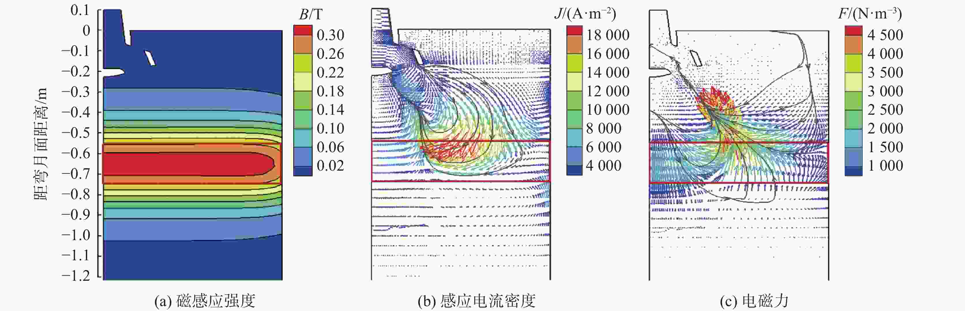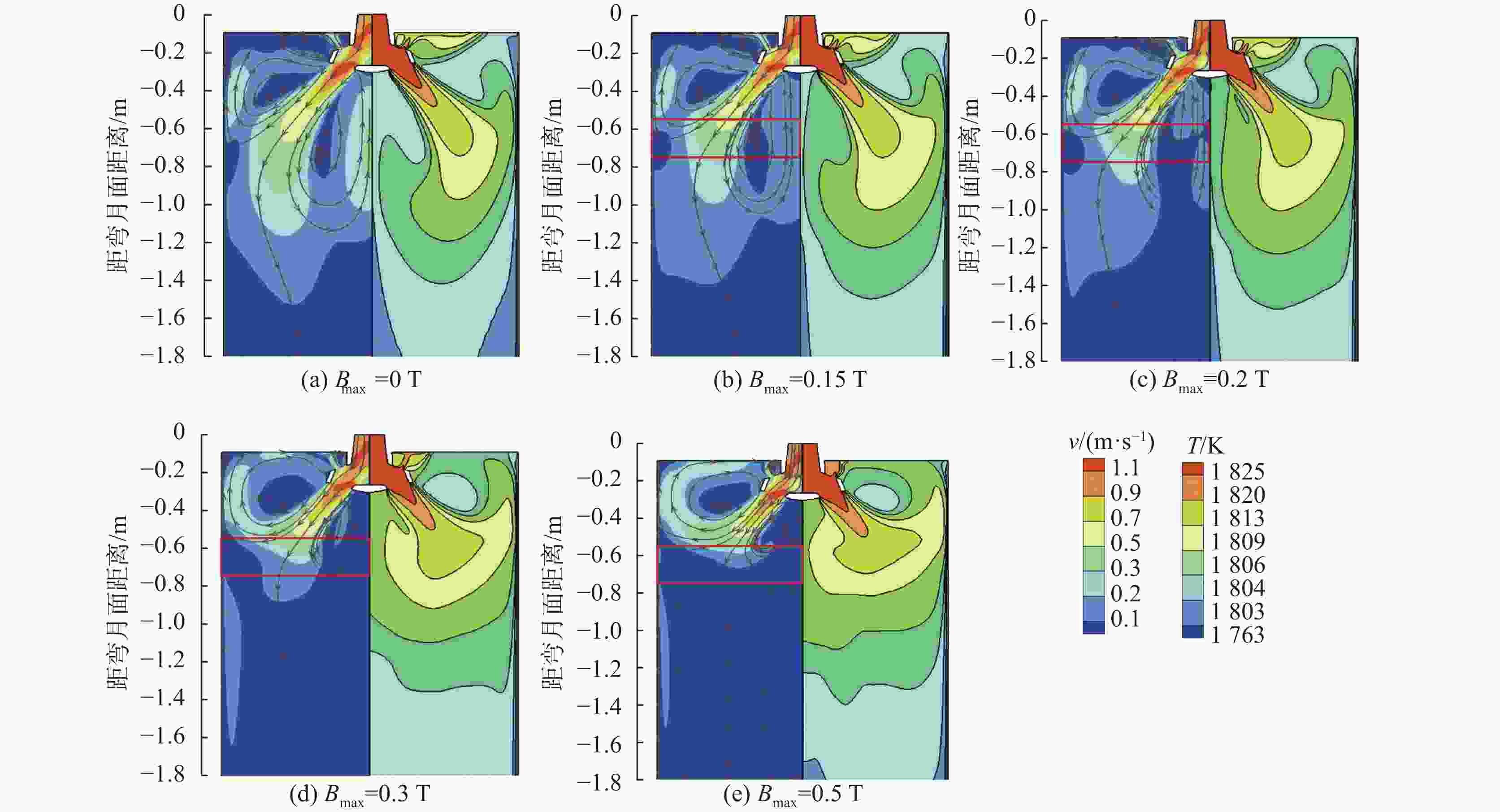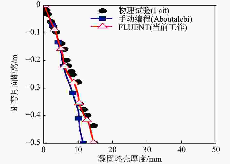 [1] Yang Yadi, Zhao Jing, Cui Jianzheng. Numerical simulation on interfacial behavior and mixing phenomena in three-phase argon-stirred ladles[J]. Iron Steel Vanadium Titanium, 2021,42(5):138−148. (杨亚迪, 赵晶, 崔剑征. 三相氩气搅拌钢包内界面行为及混合现象的数值模拟[J]. 钢铁钒钛, 2021,42(5):138−148. doi: 10.7513/j.issn.1004-7638.2021.05.022Yang Yadi, Zhao Jing, Cui Jianzheng. Numerical simulation on interfacial behavior and mixing phenomena in three-phase argon-stirred ladles[J]. Iron Steel Vanadium Titanium, 2021, 42(5): 138-148. doi: 10.7513/j.issn.1004-7638.2021.05.022 [2] Vakhrushev A, Wu M, Ludwig A, et al. Numerical investigation of shell formation in thin slab casting of funnel-type mold[J]. Metall. Mater. Trans. B, 2014,45(3):1024−1037. doi: 10.1007/s11663-014-0030-2 [3] Liu H, Yang C, Zhang H, et al. Numerical simulation of fluid flow and thermal characteristics of thin slab in the funnel-type molds of two casters[J]. ISIJ Int., 2011,51(3):392−401. doi: 10.2355/isijinternational.51.392 [4] Zhang L S, Zhang X F, Wang B, et al. Numerical analysis of the influences of operational parameters on the braking effect of EMBr in a CSP funnel-type mold[J]. Metall. Mater. Trans. B, 2014,45(1):295−306. doi: 10.1007/s11663-013-9948-z [5] Tian X Y, Li B W, He J C. Electromagnetic brake effects on the funnel shape mold of a thin slab caster based on a new type magnet[J]. Metall. Mater. Trans. B, 2009,40(4):596−604. doi: 10.1007/s11663-009-9246-y [6] Thunman M, Eckert S, Hennig O. Study on the formation of open-eye and slag entrainment in gas stirred ladle[J]. Steel Res. Int., 2007,78(12):849−856. doi: 10.1002/srin.200706297 [7] Hwang Y S, Cha P R, Nam H S, et al. Numerical analysis of the influences of operational parameters on the fluid flow and meniscus shape in slab caster with EMBr[J]. ISIJ Int., 1997,37(7):659−667. doi: 10.2355/isijinternational.37.659 [8] Zhu Miaoyong, Cai Zhaozhen. Heat transfer behavior and homogenous solidification control for high-speed continuous casting slab mold[J]. Chinese Journal of Engineering, 2022,44(4):703−711. (朱苗勇, 蔡兆镇. 高速连铸结晶器内凝固传热行为及其均匀性控制[J]. 工程科学学报, 2022,44(4):703−711. doi: 10.3321/j.issn.1001-053X.2022.4.bjkjdxxb202204021Zhu Miaoyong, Cai Zhaozhen. Heat transfer behavior and homogenous solidification control for high-speed continuous casting slab mold[J]. Chinese Journal of Engineering, 2022, 44(4): 703-711. doi: 10.3321/j.issn.1001-053X.2022.4.bjkjdxxb202204021 [9] Zhu Miaoyong. Some considerations for new generation of high-efficiency continuous casting technology development[J]. Iron and Steel, 2019,54(8):21−36. (朱苗勇. 新一代高效连铸技术发展思考[J]. 钢铁, 2019,54(8):21−36. doi: 10.13228/j.boyuan.issn0449-749x.20190213Zhu Miaoyong. Some considerations for new generation of high-efficiency continuous casting technology development[J]. Iron and steel, 2019, 54(8): 21-36. doi: 10.13228/j.boyuan.issn0449-749x.20190213 [10] Liu Z, Vakhrushev A, Wu M, et al. Effect of an electrically-conducting wall on transient magnetohydrodynamic flow in a continuous-casting mold with an electromagnetic brake[J]. Metals, 2018,8(8):609−623. doi: 10.3390/met8080609 [11] Schurmann D, Glavinic´ I, Willers B, et al. Impact of the electromagnetic brake position on the flow structure in a slab continuous casting mold: An experimental parameter study[J]. Metall. Mater. Trans. B, 2020,51(1):61−78. doi: 10.1007/s11663-019-01721-x [12] Wang Y F, Zhang L F. Fluid flow-related transport phenomena in steel slab continuous casting strands under electromagnetic brake[J]. Metall. Mater. Trans. B, 2011,42(6):1319−1351. doi: 10.1007/s11663-011-9554-x [13] Jin K, Vanka S P, Thomas B G. Large eddy simulations of the effects of EMBr and SEN submergence depth on turbulent flow in the mold region of a steel caster[J]. Metall. Mater. Trans. B, 2017,48(1):162−178. doi: 10.1007/s11663-016-0801-z [14] Sarkar S, Singh V, Ajmani S K, et al. Effect of double ruler magnetic field in controlling meniscus flow and turbulence intensity distribution in continuous slab casting mold[J]. ISIJ Int., 2016,56(12):2181−2190. doi: 10.2355/isijinternational.ISIJINT-2016-313 [15] Thomas B G, Singh R, Vanka S P, et al. Effect of single-ruler electromagnetic braking (EMBr) location on transient flow in continuous casting[J]. JMSP, 2015,15(1):93−104. [16] Yin Y B, Zhang J M. Mathematical modeling on transient multiphase flow and slag entrainment in continuously casting mold with double-ruler EMBr through LES+VOF+DPM method[J]. ISIJ Int., 2021,61(3):853−864. doi: 10.2355/isijinternational.ISIJINT-2020-592 [17] Sarkar S, Singh V, Ajmani S K, et al. Effect of argon injection in meniscus flow and turbulence intensity distribution in continuous slab casting mold under the influence of double ruler magnetic field[J]. ISIJ Int., 2018,58(1):68−77. doi: 10.2355/isijinternational.ISIJINT-2017-448 [18] Hernandez S G, Guzman C H G, Davila R M, et al. Modeling study of EMBr effects on the detrimental dynamic distortion phenomenon in a funnel thin slab mold[J]. Crystals, 2020,10(11):958−976. doi: 10.3390/cryst10110958 [19] Li Z, Zhang L T, Ma D Z, et al. A narrative review: the electromagnetic field arrangement and the “braking” effect of electromagnetic brake (EMBr) technique in slab continuous casting[J]. Metall Res Technol., 2021,118(2):218−234. doi: 10.1051/metal/2021016 [20] Cai Zhaozhen, Zhu Miaoyong. Simulation of thermal behavior during steel solidification in slab continuous casting mold[J]. Acta Metallurgica Sinica, 2011,47(6):678−687. (蔡兆镇, 朱苗勇. 板坯连铸结晶器内钢凝固过程热行为研究[J]. 金属学报, 2011,47(6):678−687.Cai Zhaozhen, Zhu Miaoyong. Simulation of thermal behavior during steel solidification in slab continuous casting mold[J]. Acta Metallurgica Sinica, 2011, 47(6): 678-687. [21] Gong Jiarui, Liu Zhongqiu, Wu 