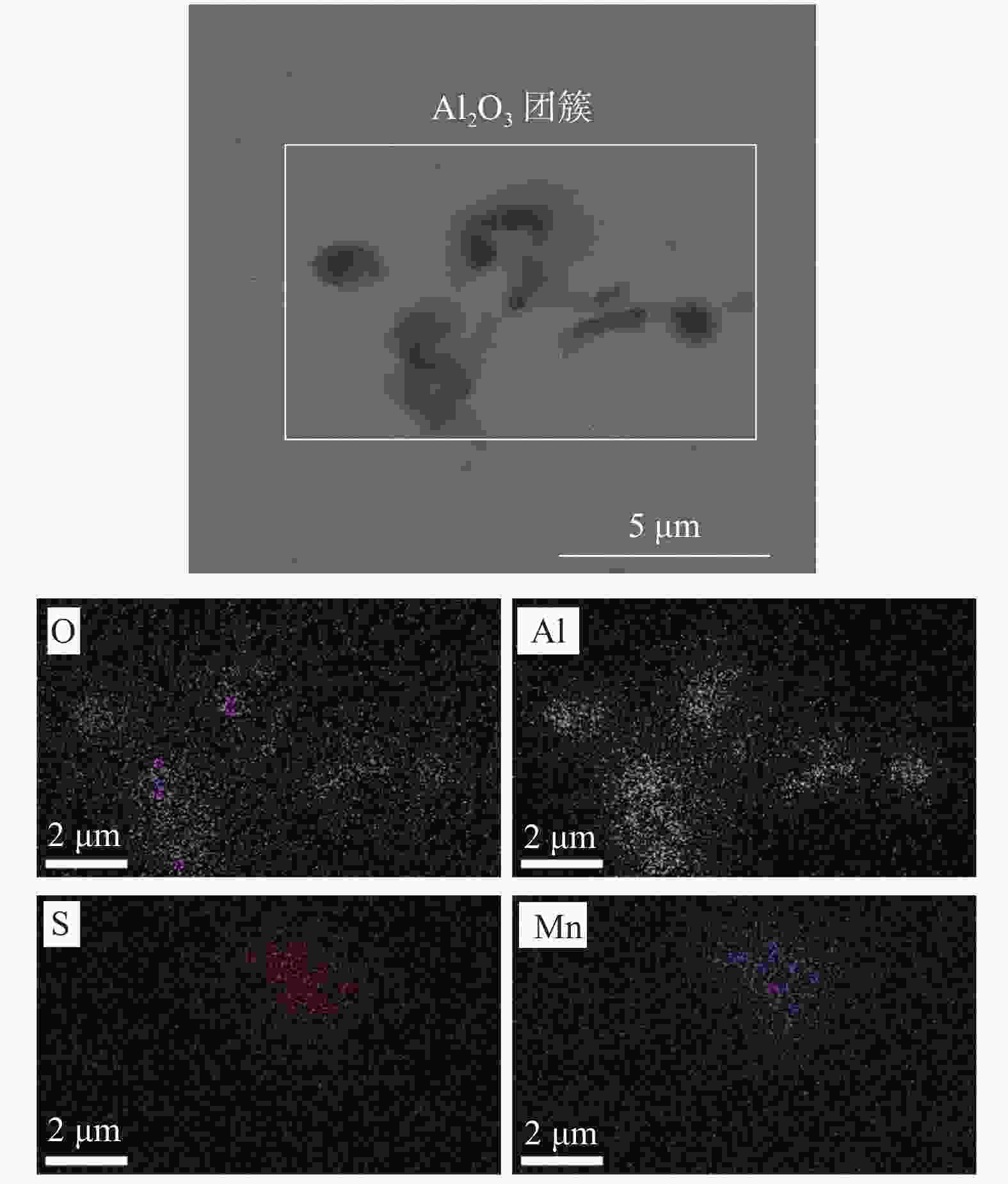 摘要: 高速车轮钢中的MnS-Al2O3复合夹杂物能够降低Al2O3夹杂物对于车轮钢疲劳性能的危害。通过检测实验室制备的车轮钢,确定了车轮钢中存在MnS夹杂物、Al2O3夹杂物和MnS-Al2O3复合夹杂物。采用酸溶法提取Al2O3夹杂物,根据XRD检测结果确定钢中Al2O3夹杂物的晶体类型为α-Al2O3。通过非水溶液电解法提取了钢中的复合夹杂物,并检测MnS-Al2O3复合夹杂物的形貌。根据钢的成分进行热力学计算,分析试验钢的固相线和液相线温度和夹杂物析出温度的关系,表明车轮钢中Al2O3夹杂物能够为MnS的析出提供形核条件。最后,通过计算MnS-Al2O3复合夹杂物界面两相的晶面错配度,说明了MnS的(100)面在Al2O3 (0001)面上可以有效形核析出。这为钢中形成MnS-Al2O3复合夹杂物,降低Al2O3夹杂物危害提供了一定的理论基础。Abstract: The composite inclusions of MnS-Al2O3 in high-speed railway wheel steel can reduce the effect of Al2O3 on fatigue properties of wheel steel. In this study, the types of inclusions in wheel steel were determined as MnS, Al2O3 and MnS-Al2O3 composite inclusions by testing wheel steel prepared in laboratory. The inclusions of Al2O3 were extracted by acid dissolution method. XRD results showed that crystal texture of Al2O3 inclusion in steel was α-Al2O3. The composite inclusion in steel was extracted by non-aqueous electrolysis method, and the morphology of MnS-Al2O3 composite inclusion was detected. Based on the thermodynamic calculation of steel composition, the relationship between the solidus and liquidus temperatures of experimental steel and the precipitation temperature of inclusions was analyzed. The results show that Al2O3 inclusions in wheel steel can provide nucleation sites for the precipitation of MnS. It was clarified that the surface of (100) of MnS can precipitate on the Al2O3 (0001) through the calculation of the mismatch between the two phases of MnS and Al2O3. This works provides a theoretical basis for the formation of MnS-Al2O3 composite inclusions in steel and the reduction of the damage of Al2O3 inclusions.