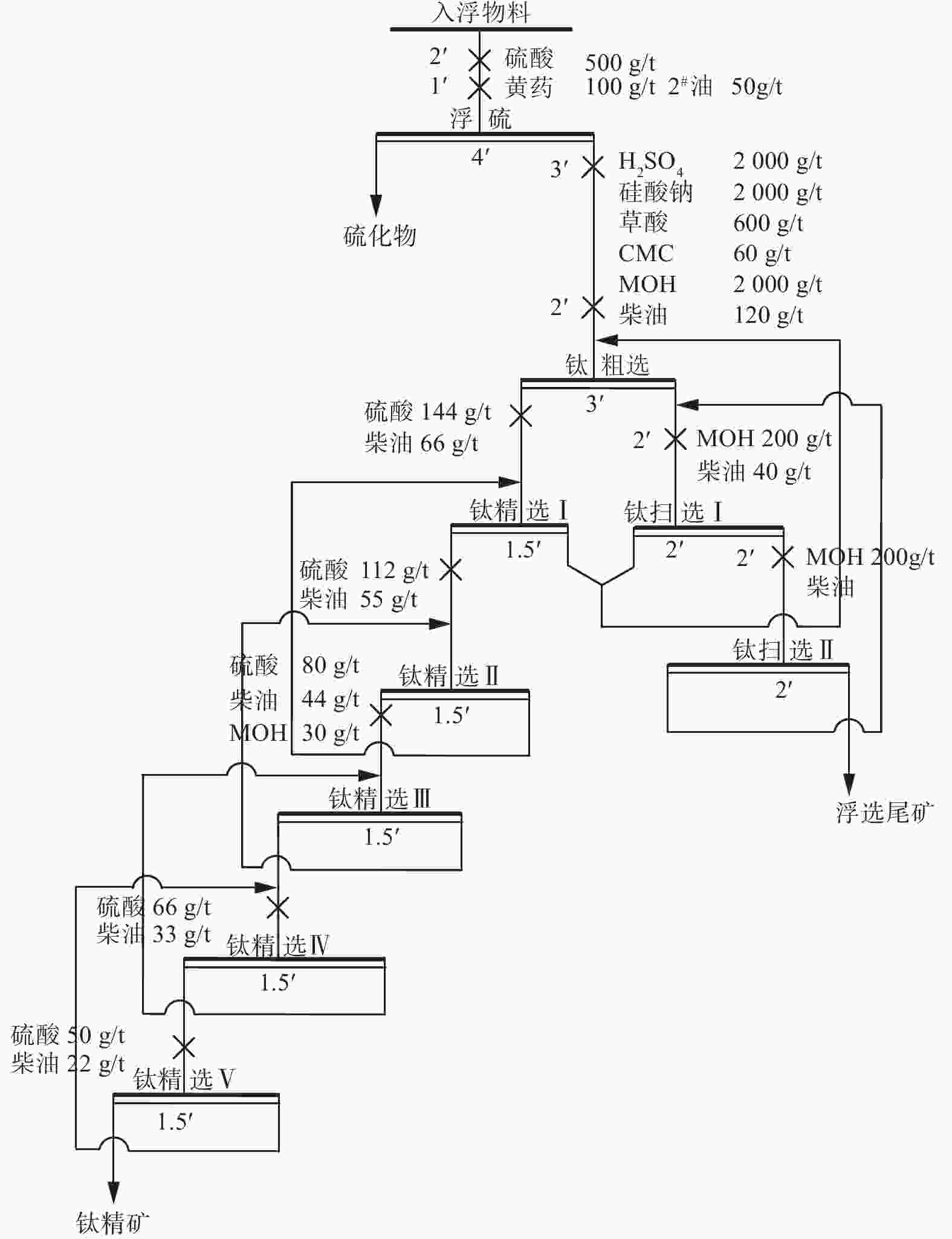 图  16  浮选选钛闭路试验流程及条件