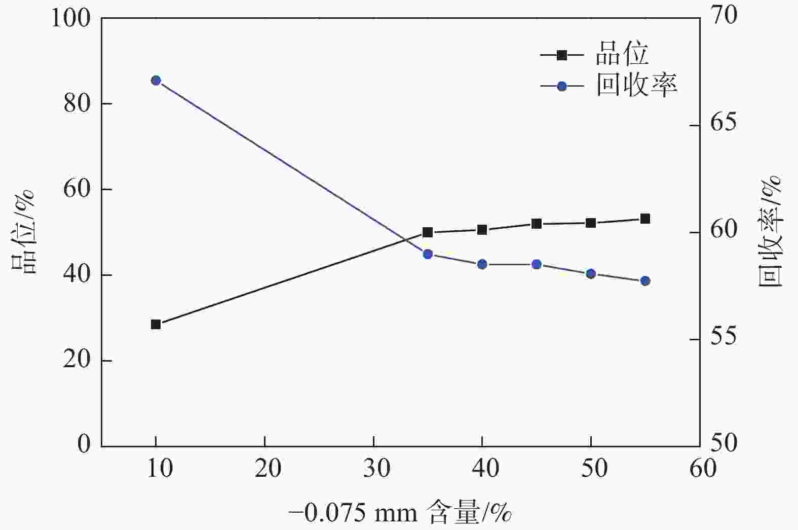 图  2  一段磨矿细度试验结果