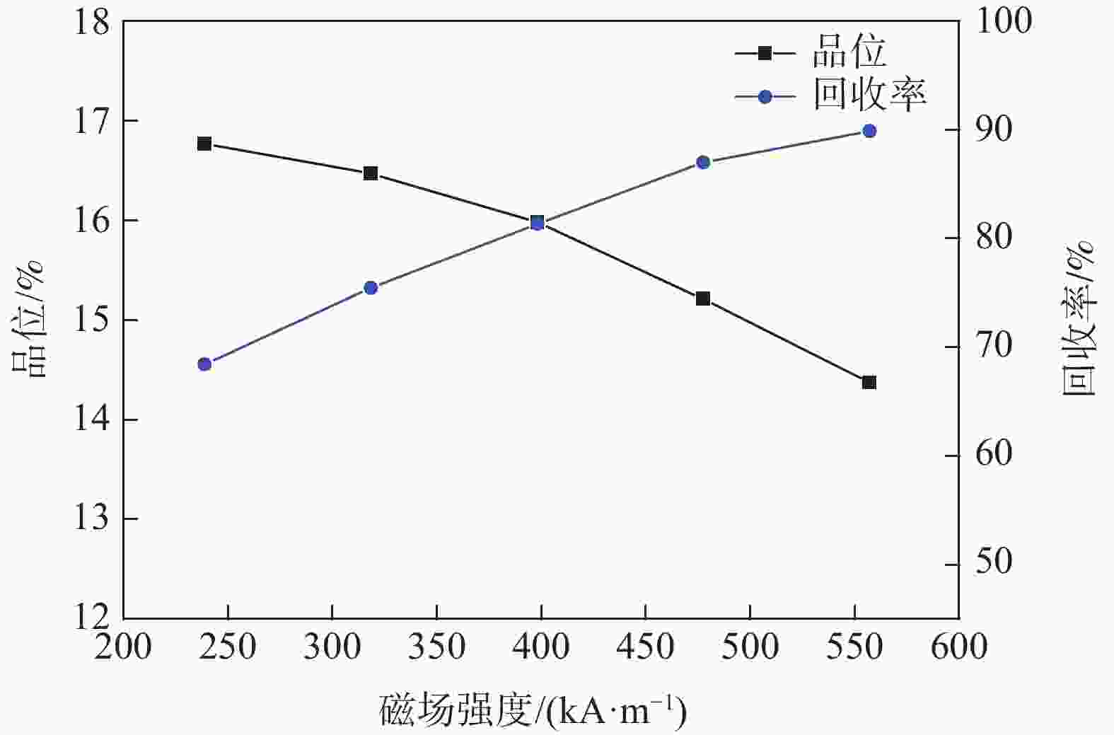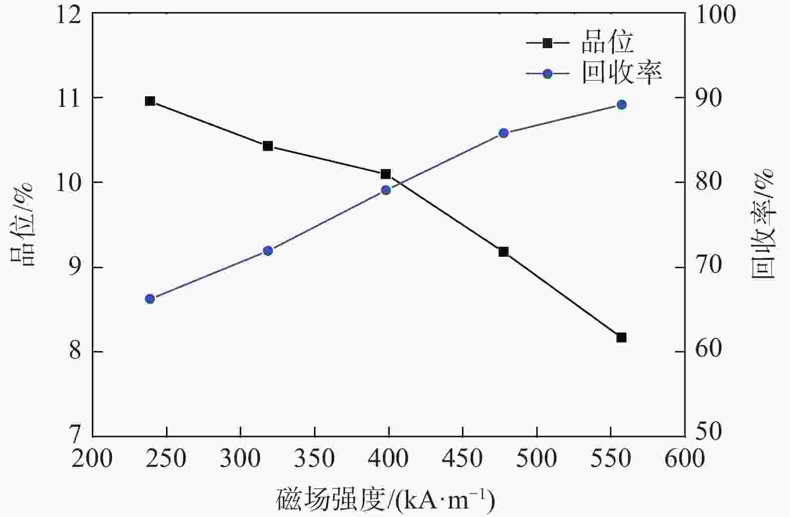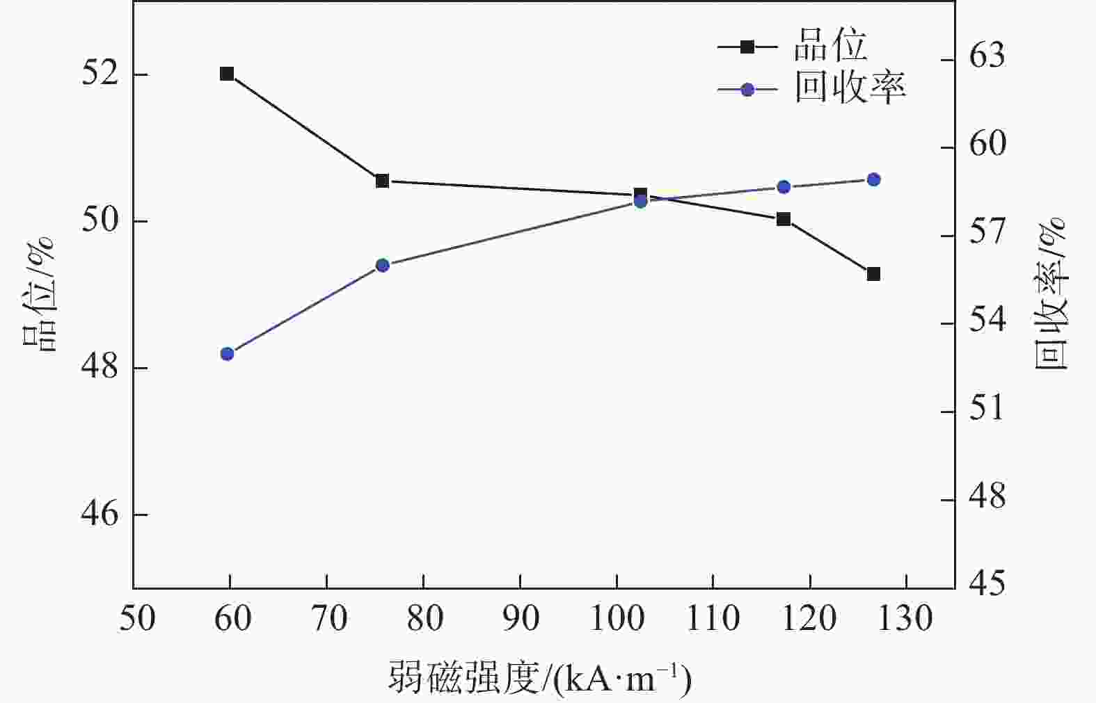图  5  二段弱磁选磁场强度试验结果