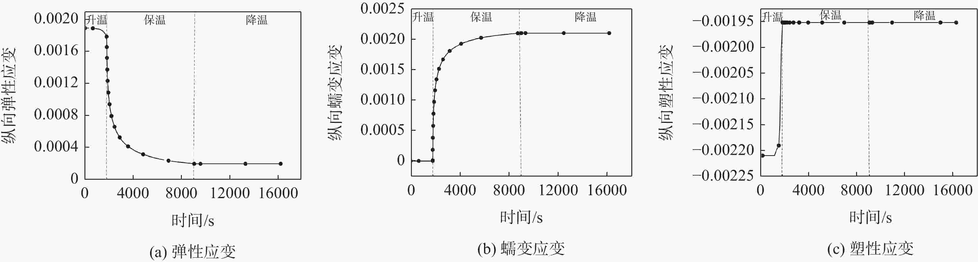 图  9  焊后热处理过程中弹性应变、塑性应变及蠕变应变随时间变化曲线