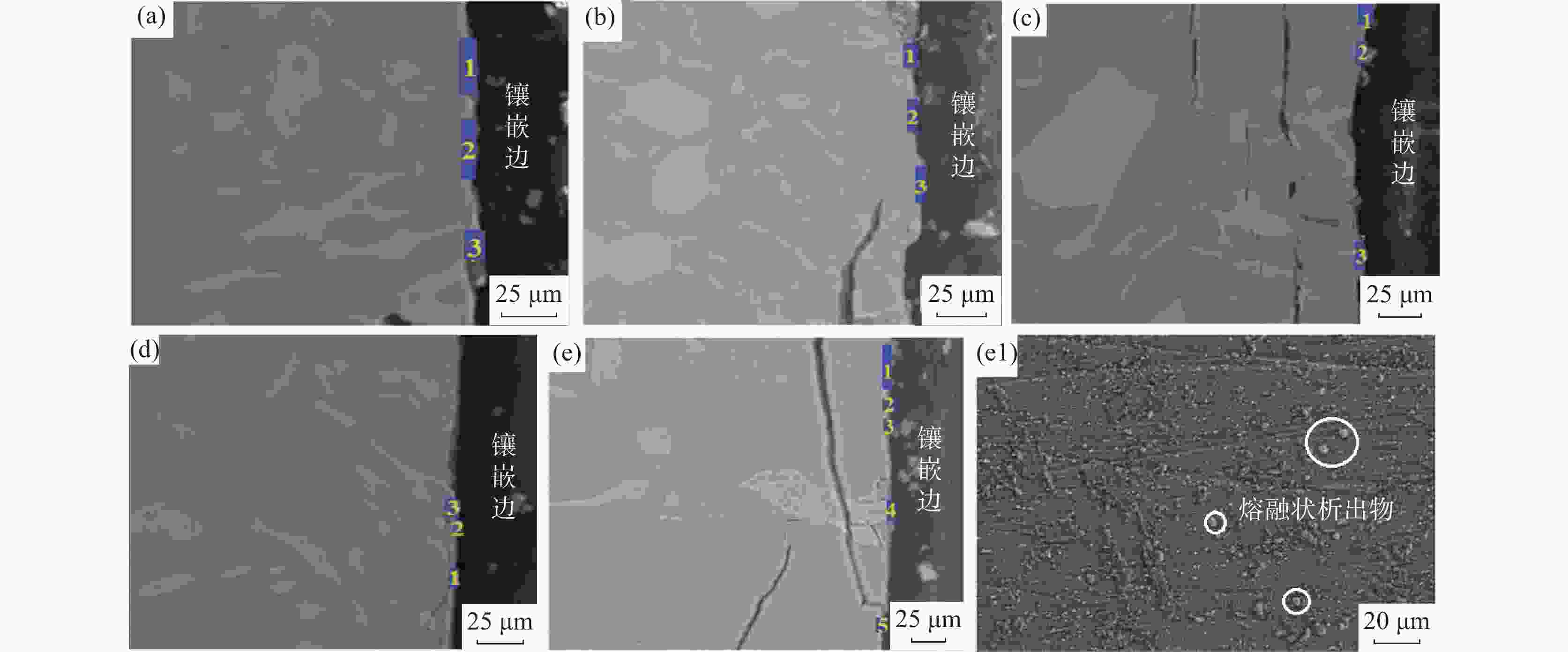 摘要: 以攀枝花酸溶性钛渣、铝粉、氧化钙为原料制备钛铝基多元合金,并将钛铝基多元合金在不同温度不同时间条件下直接氮化处理,得到氮化层。采用扫描电镜、X射线衍射仪、显微硬度计、摩擦磨损试验机、三维形貌仪等对制得的氮化层的性能进行检测分析。结果表明,在不同条件下对钛铝基多元合金进行直接氮化,均能提高合金的表面硬度及耐磨性。氮化温度对合金硬度及耐磨性能的影响较大,氮化时间为2 h时,适宜的氮化温度为800 ℃,此时氮化层的平均硬度(HV)高达698.8,平均摩擦系数为0.120,往复摩擦的磨损率为19.44 mm3/(N·m),表面粗糙度为0.731 μm;氮化温度为900 ℃时,适宜的氮化时间为3 h,此时得到的氮化层硬度(HV)为682.6,平均摩擦系数为0.059,往复摩擦的磨损率为9.48 mm3/(N·m),表面粗糙度为0.601 μm。Abstract: In this paper, the titanium-aluminum-based multi-component alloy was prepared from Panzhihua acid-soluble titanium slag, aluminum powder and calcium oxide. After directly nitriding treatment at different temperatures and different time, a nitrided layer was obtained. Scanning electron microscopy, X-ray diffractometer, microhardness tester, friction and wear testing machine, and three-dimensional topography instrument were used to detect and analyze the properties of the nitriding layer. The results show that the surface hardness and wear resistance of Ti-Al based multielement alloy can be improved by direct nitriding under different conditions. The nitriding temperature has a great effect on the hardness and wear resistance of the alloy. When the nitriding time is 2 h, the optimum nitriding temperature is 800 ℃, the average hardness (HV) of the nitriding layer is up to 698.8, the average friction coefficient is 0.120, the reciprocating friction wear rate is 19.44 mm3/(N·m), and the surface roughness is 0.731 μm. When the nitriding temperature is 900 ℃ and the optimum nitriding time is 3 h, the hardness (HV) of nitriding layer is 682.6, the average friction coefficient is 0.059, the reciprocating friction wear rate is 9.48 mm3/(N·m), and the surface roughness is 0.601 μm.