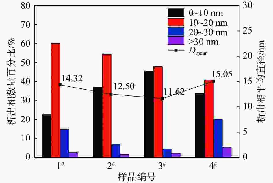 图  3  四种试验钢中纳米级析出相尺寸数量分布及平均直径