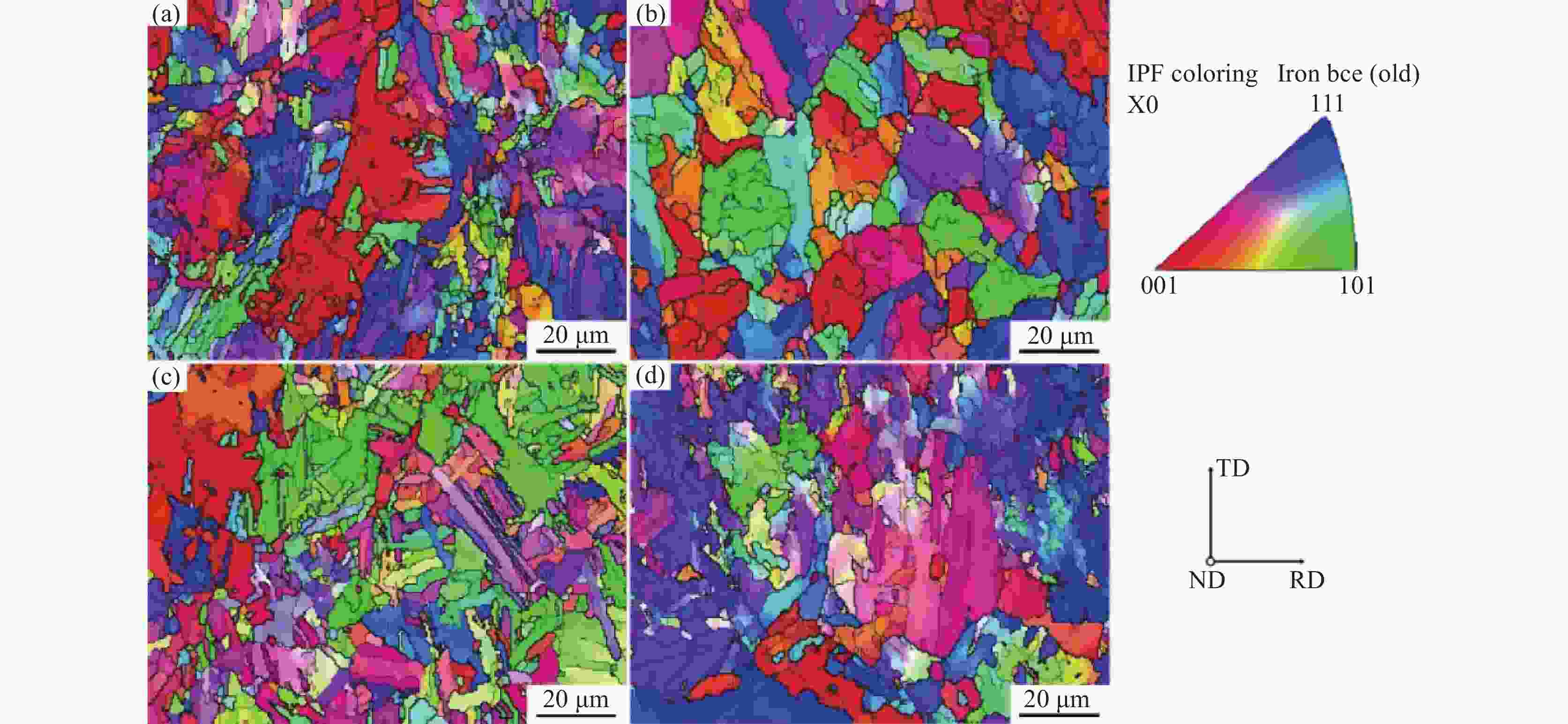 Figure  6.  Grain orientation diagrams perpendicular to normal direction of four experimental steels