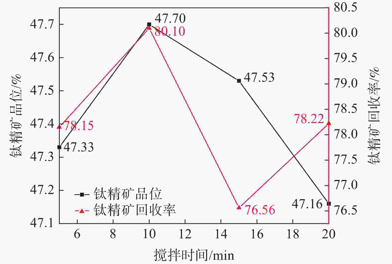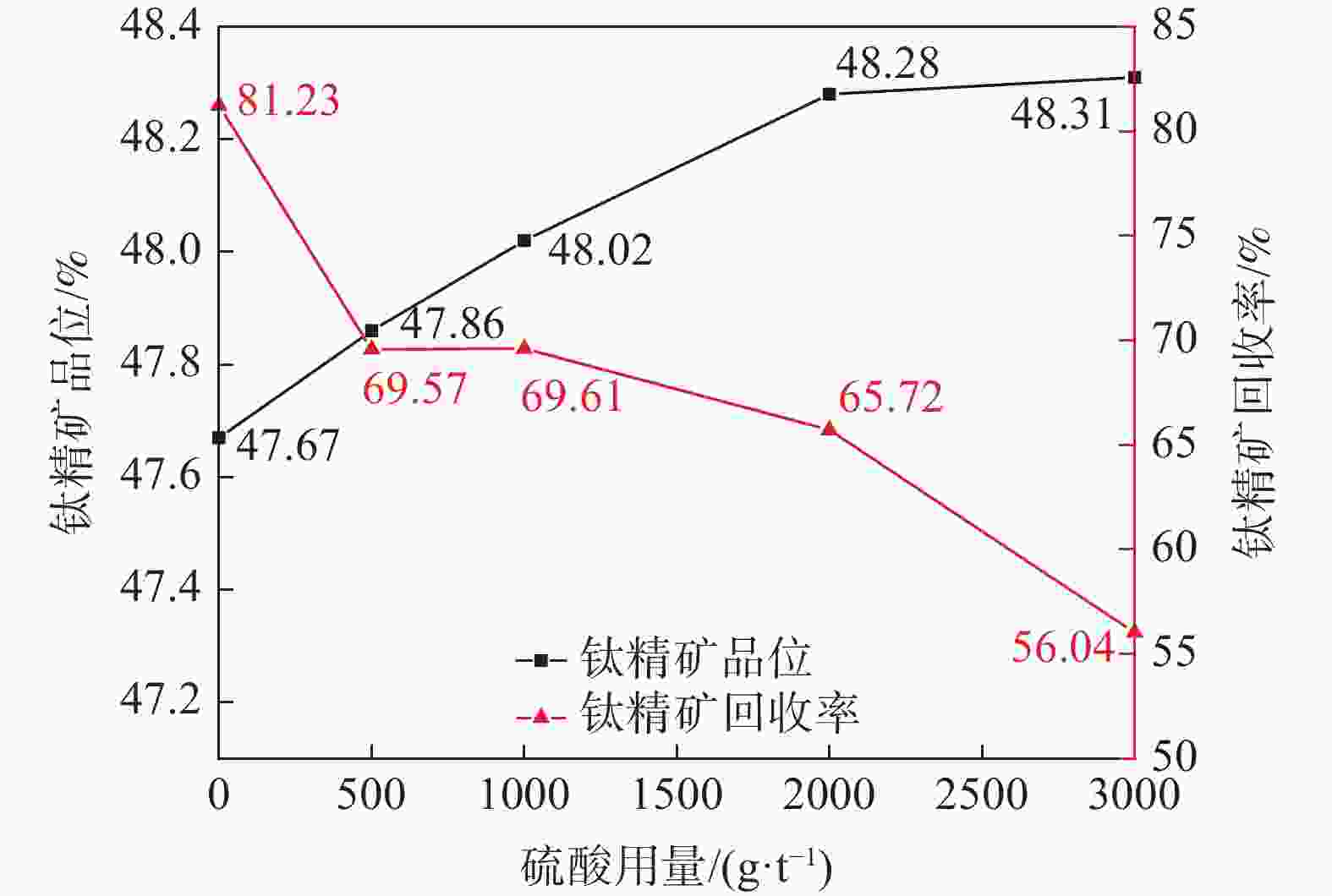 浮选流程 产品名称 产率/% TiO2品位/% 回收率/%