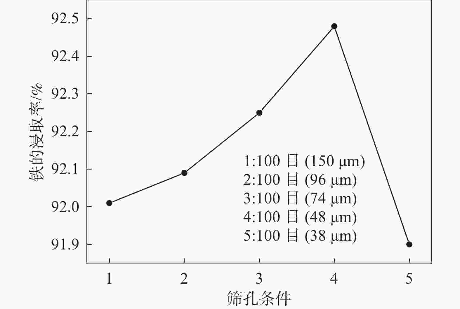摘要: 针对硫酸酸浸钛石膏进行除铁工艺研究,去除钛石膏中的铁离子杂质,实现钛石膏纯度和白度的有效改善,为钛石膏下游产品的开发利用提供充足的原料。试验研究了固液比、反应温度、反应时间、转速、粒度和硫酸浓度等不同酸浸条件下的除铁效果,获得适宜的工艺条件,结合其物相、微观相貌、粒度分布等属性的变化情况,同时探讨了钛石膏除杂机理。结果表明,在钛石膏硫酸酸浸除杂过程中,适宜的工艺条件为:固液比为 1:10 g/g、反应温度为70 ℃、反应时间为60 min、SO42−质量分数为7%、转速为 400 r/min、粒度为150 μm,此时钛石膏除铁率可达到94%,白度有了明显的改善。Abstract: In this study, the removal of iron impurity contained in the industrial sulfuric acid leaching titanium gypsum was investigated, which leads to effective improvement of purity and whiteness of titanium gypsum, providing sufficient raw materials for the development and utilization of titanium gypsum downstream products. The effect of iron removal under different acid leaching conditions such as solid-liquid ratio, reaction temperature, reaction time, rotation speed, particle size and sulfuric acid concentration was studied and the optimum process conditions was discovered. Furthermore, the impurity removal mechanism of titanium gypsum was found out based on the changes of phase, microstructure and particle size distribution. During the process of removing iron from titanium gypsum by sulfuric acid leaching, the optimal process parameters are obtained as follows: solid-liquid ratio of 1:10 g/g, reaction temperature of 70 ℃, reaction time of 60 min, SO42− mass fraction of 7%, rotating speed of 400 r/min and particle size of 150 μm, under which the iron removal leaching rate of titanium gypsum can reach 94%. Under the optimal conditions, the acid leaching product changes from light yellow to gray white, and the whiteness is evidently improved.