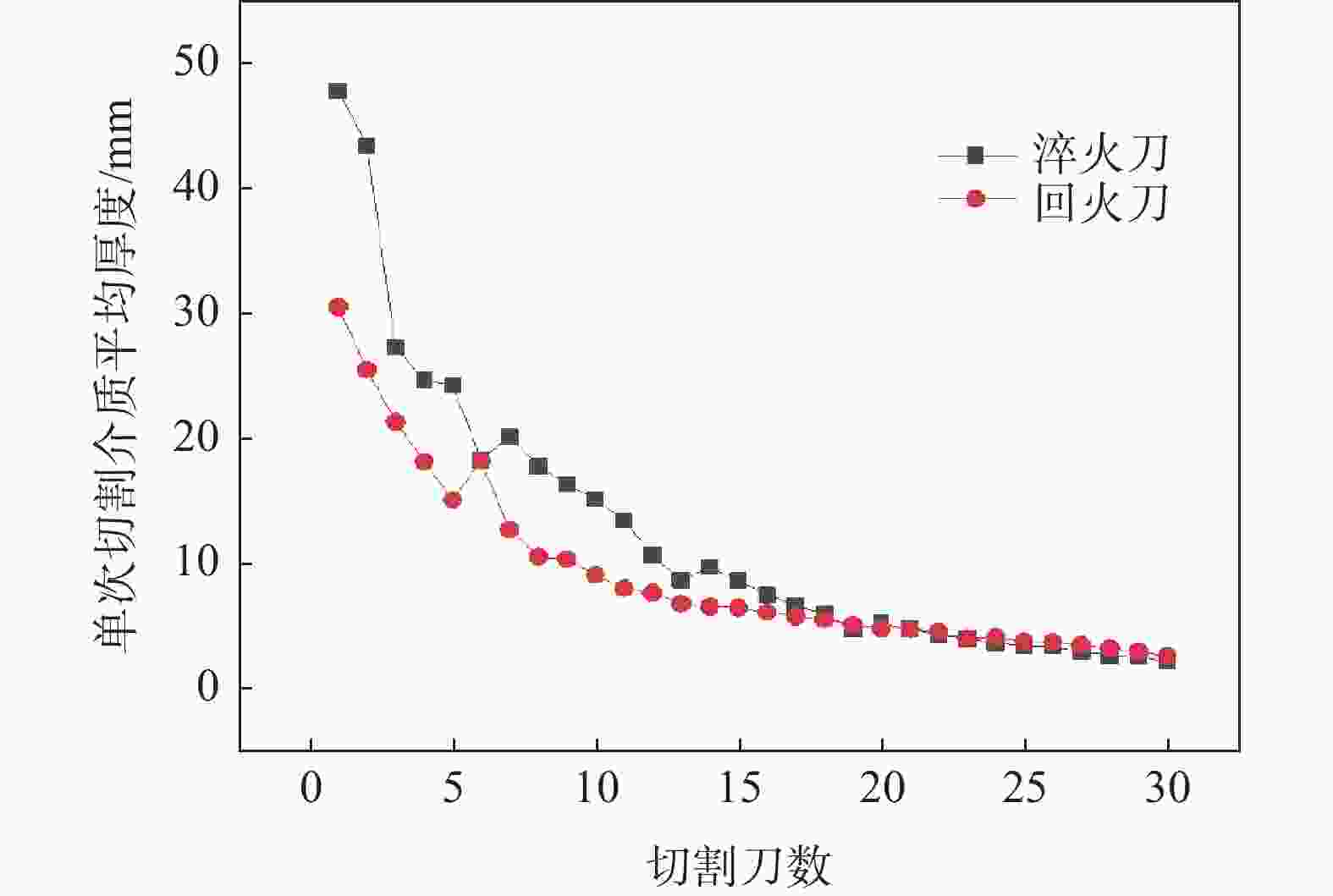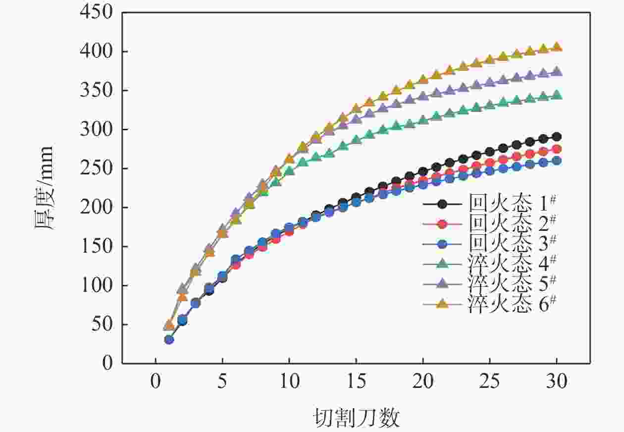摘要: 为研究碳化物的分布、种类与刀具锋利度之间的关系,分别对30Cr13材料刀具的淬火态和回火态进行了锋利度测试和显微组织表征。结果分析表明,经过300 ℃、30 min回火处理后的刀具,其初始锋利度下降了34.6%,累计切割厚度下降了26.4%。但回火态的刀具单次切割下损失的锋利度值更小,有更好的耐用性。其原因是回火后M23C6型碳化物大量析出,通过弥散强化增强了耐磨性,而淬火马氏体中的碳减少,硬度下降,刀具锋利度降低。Abstract: In the current study, the sharpness test and microstructure characterization for the 30Cr13 cutter under the regime of quenching and tempering processes was performed to investigate the relationship between distribution and type of carbides and sharpness of cutting tools. After the tempering process (300 ℃, 30 min), the initial sharpness and cumulative thickness cuts of the cutter decrease by 34.6% and 26.4%, respectively. However, the tool under the state of tempering have a less loss of sharpness in single cutting and a better durability, and the following reasons should be considered for these results: (i) the increase of the M23C6 carbide precipitates after tempering enhances wear resistance of tools through dispersion strengthening and (ii) the reduction of carbon in the quenched martensite leads to lower hardness and sharpness of the cutter.