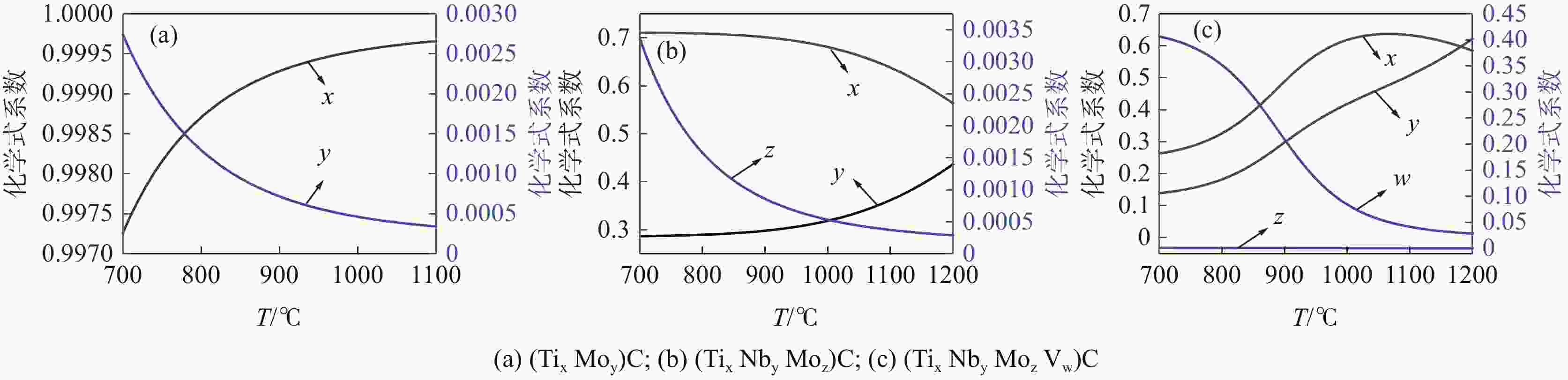 T/ ℃ Ti-Mo Ti-Nb-Mo Ti-Nb-Mo-V lg(I/K) lg(t0.05 a/t0 a) lg(I/K) lg(t0.05 a/t0 a) lg(I/K) lg(t0.05 a/t0 a) 700 −20.79 26.49 −21.50 27.20 −20.55 26.85 750 −20.56 25.68 −20.92 26.14 −20.63 26.21 800 −20.67 25.15 −20.53 25.27 −20.87 25.72 850 −21.28 25.01 −20.38 24.62 −20.89 25.13 900 −22.72 25.47 −20.53 24.22 −20.50 24.31 950 −25.85 27.10 −21.13 24.16 −20.25 23.63 1000 −33.14 31.54 −22.45 24.61 −20.66 23.45 1050 −55.11 45.80 −25.09 25.99 −22.02 23.96 1100 −194.45 138.33 −30.60 29.31 −25.04 25.61 表 4 Ti-Mo、Ti-Nb-Mo和Ti-Nb-Mo-V钢中碳化物在奥氏体中位错线上形核的计算结果