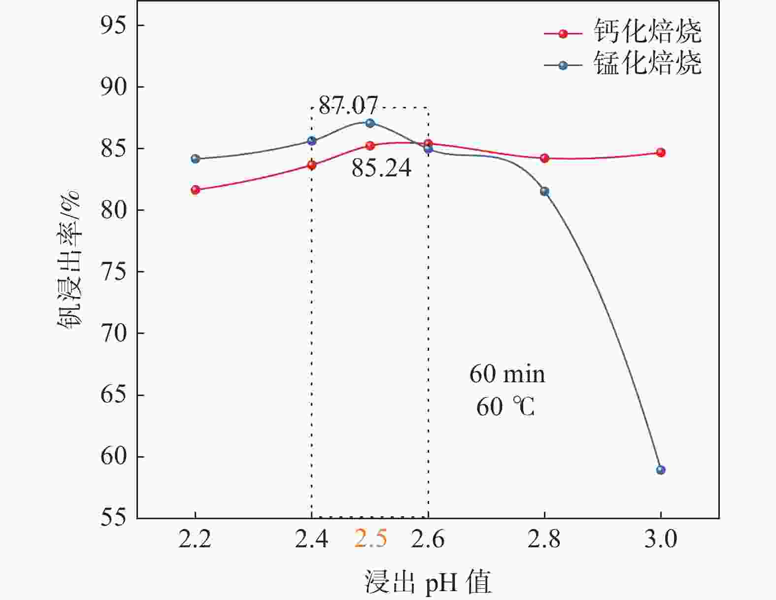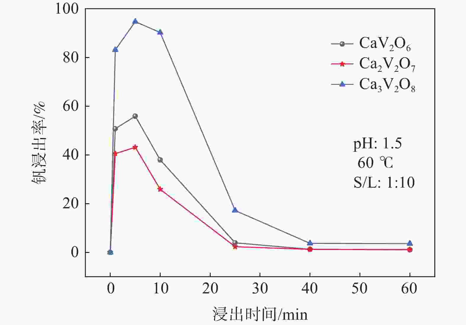Study on leaching behavior of vanadium in acid leaching process of calcium and manganese vanadate system
