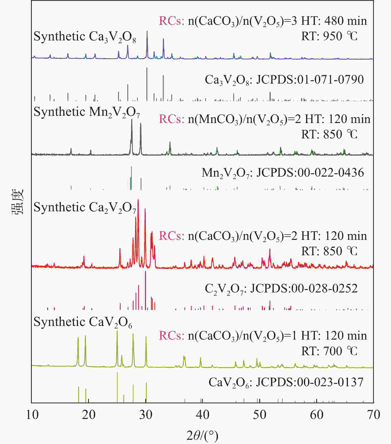 [1] Yang Shouzhi. Vanadium metallurgy [M]. Beijing: Metallurgical Industry Press, 2010. (杨守志. 钒冶金[M]. 北京: 冶金工业出版社, 2010.Yang Shouzhi. Vanadium metallurgy [M]. Beijing: Metallurgical Industry Press, 2010. [2] Qi Mingjian. Present situation and prospect of extracting vanadium from stone coal[J]. Hydrometallurgy, 1999(4):1−10. (漆明鉴. 从石煤中提钒现状及前景[J]. 湿法冶金, 1999(4):1−10.Qi Mingjian. Present situation and prospect of extracting vanadium from stone coal[J]. Hydrometallurgy, 1999(4): 1−10. [3] Liao Shiming , Bai Tanlun. Foreign vanadium metallurgy[M]. Beijing: Metallurgical Industry Press, 1985. (廖世明, 柏谈论. 国外钒冶金[M]. 北京: 冶金工业出版社, 1985.Liao Shiming , Bai Tanlun. Foreign vanadium metallurgy[M]. Beijing: Metallurgical Industry Press, 1985. [4] Wang Shuai, Guo Yufeng, Zheng Fuqiang, et al. Behavior of vanadium during reduction and smelting of vanadium titanomagnetite metallized pellets[J]. Transactions of Nonferrous Metals Society of China, 2020,30:1687−1696. (王帅, 郭玉峰, 郑富强, 等. 钒钛磁铁矿金属化球团还原冶炼过程中钒的行为[J]. 有色金属学报, 2020,30:1687−1696.Wang Shuai, Guo Yufeng, Zheng Fuqiang, et al. Behavior of vanadium during reduction and smelting of vanadium titanomagnetite metallized pellets[J]. Transactions of Nonferrous Metals Society of China, 2020, 30: 1687−1696. [5] Chen Donghui. 2021 annual evaluation of vanadium industry[J]. Hebei Metallurgy, 2022,324(12):19−30. (陈东辉. 钒产业2021年年度评价[J]. 河北冶金, 2022,324(12):19−30.Chen Donghui. 2021 annual evaluation of vanadium industry[J]. Hebei Metallurgy, 2022, 324(12): 19−30. [6] Zhang X, Xie B, Diao J, et al. Nucleation and growth kinetics of spinel crystals in vanadium slag[J]. Ironmaking & Steelmaking, 2013,39:147−154. [7] Deng Rongrui, Xiao Hao, Xie Zhaoming, et al. A novel method for extracting vanadium by low temperature sodium roasting from converter vanadium slag[J]. Chinese Journal Chemical Engineering, 2020,28(8):2208−2213. doi: 10.1016/j.cjche.2020.03.038 [8] Liu Biao, Du Hao, Wang Shaona, et al. A novel method to extract vanadium and chromium from vanadium slag using molten NaOH-NaNO3 binary system[J]. AIChE Journal. 2023, 59 (2): 541–552. [9] Li Kunlin, Ren Shaolong, Cheng Feng. Experimental study on vanadium extraction from high-calcium and low-grade vanadium slag[J]. Iron Steel Vanadium Titanium, 2014,35(1):16−20. (李坤林, 任少龙, 成丰. 高钙低品位钒渣提钒试验研究[J]. 钢铁钒钛, 2014,35(1):16−20.Li Kunlin, Ren Shaolong, Cheng Feng. Experimental study on vanadium extraction from high-calcium and low-grade vanadium slag[J]. Iron Steel Vanadium Titanium, 2014, 35(1): 16−20. [10] Wu Enhui, Hou Jing, Li Jun. Experimental study on oxidative calcification roasting-acid leaching of vanadium from vanadium chromium residue[J]. Rare Metals and Cemented Carbid, 2017,45(6):8−13. (吴恩辉, 侯静, 李军. 钒铬渣氧化钙化焙烧-酸浸提钒实验研究[J]. 稀有金属与硬质合金, 2017,45(6):8−13.Wu Enhui, Hou Jing, Li Jun. Experimental study on oxidative calcification roasting-acid leaching of vanadium from vanadium chromium residue[J]. Rare Metals and Cemented Carbid, 2017, 45(6): 8−13. [11] Zhang Juhua, Zhang Wei, Xue Zhengliang. An environment-friendly process featuring calcified roasting and precipitation purification to prepare vanadium pentoxide from the converter vanadium slag[J]. Metals, 2018,9(1):21. doi: 10.3390/met9010021 [12] Zhang Juhua, Yan Zhefeng, Feng Jiaxin, et al. Effect of vanadium slag particle size on vanadium slag calcification roasting process of vanadium extraction[J]. Journal of Anhui University of Technology(Natural Science Edition), 2017, 34(4): 316-321, 326. ) (张菊花, 严哲锋, 冯嘉鑫, 等. 钒渣粒径对钒渣钙化焙烧提钒过程的影响[J]. 安徽工业大学学报(自然科学版), 2017, 34(4): 316−321, 326.Zhang Juhua, Yan Zhefeng, Feng Jiaxin, et al. Effect of vanadium slag particle size on vanadium slag calcification roasting process of vanadium extraction[J]. Journal of Anhui University of Technology(Natural Science Edition), 2017, 34(4): 316-321, 326. ) [13] Gao Huiyang, Jiang Tao, Zhou Mi. Effect of microwave irradiation and conventional calcification roasting with calcium hydroxide on the extraction of vanadium and chromium from high−chromium vanadium slag[J]. Mineral Processing, 2020,145:106056. [14] Cao Peng. Research on vanadium slag roasted with calcium salt[J]. Iron Steel Vanadium Titanium, 2012,13(1):30−34. (曹鹏. 钒渣钙化焙烧试验研究[J]. 钢铁钒钛, 2012,13(1):30−34.Cao Peng. Research on vanadium slag roasted with calcium salt[J]. Iron Steel Vanadium Titanium, 2012, 13(1): 30−34. [15] Jiang Tao, Wen Jing, Zhou Mi, et al. Phase evolutions, microstructure and reaction mechanism during calcification roasting of high chromium vanadium slag[J]. Joural of Alloy and Compounds: An Interdisciplinary Journal of Materials Science and Solidstate Chemistry and Physics, 2018,742:402−412. [16] Wen Jing, Jiang Tao, Sun Hongyan, et al. Investigation on separation principle of vanadium and chromium among Fe2VO4-CaO-FeCr2O4 system: Simplify and simulate calcification roasting process of vanadium-chromium slag[J]. Journal of Industrial and Engineering Chemistry, 2022,115:378−389. doi: 10.1016/j.jiec.2022.08.022 [17] Guo Shuanghua. Experimental study on the extraction of vanadium from ferrovanadium slag by calcification roasting and acid leaching[J]. Hydrometallurgy, 2018,37(2):111−113. (郭双华. 用钙化焙烧—酸浸法从钒铁渣中提取钒试验研究[J]. 湿法冶金, 2018,37(2):111−113.Guo Shuanghua. Experimental study on the extraction of vanadium from ferrovanadium slag by calcification roasting and acid leaching[J]. Hydrometallurgy, 2018, 37(2): 111−113. [18] Yu Tangxia, Wen Jing, Sun Hongyan, et al. Effects of phase struc
