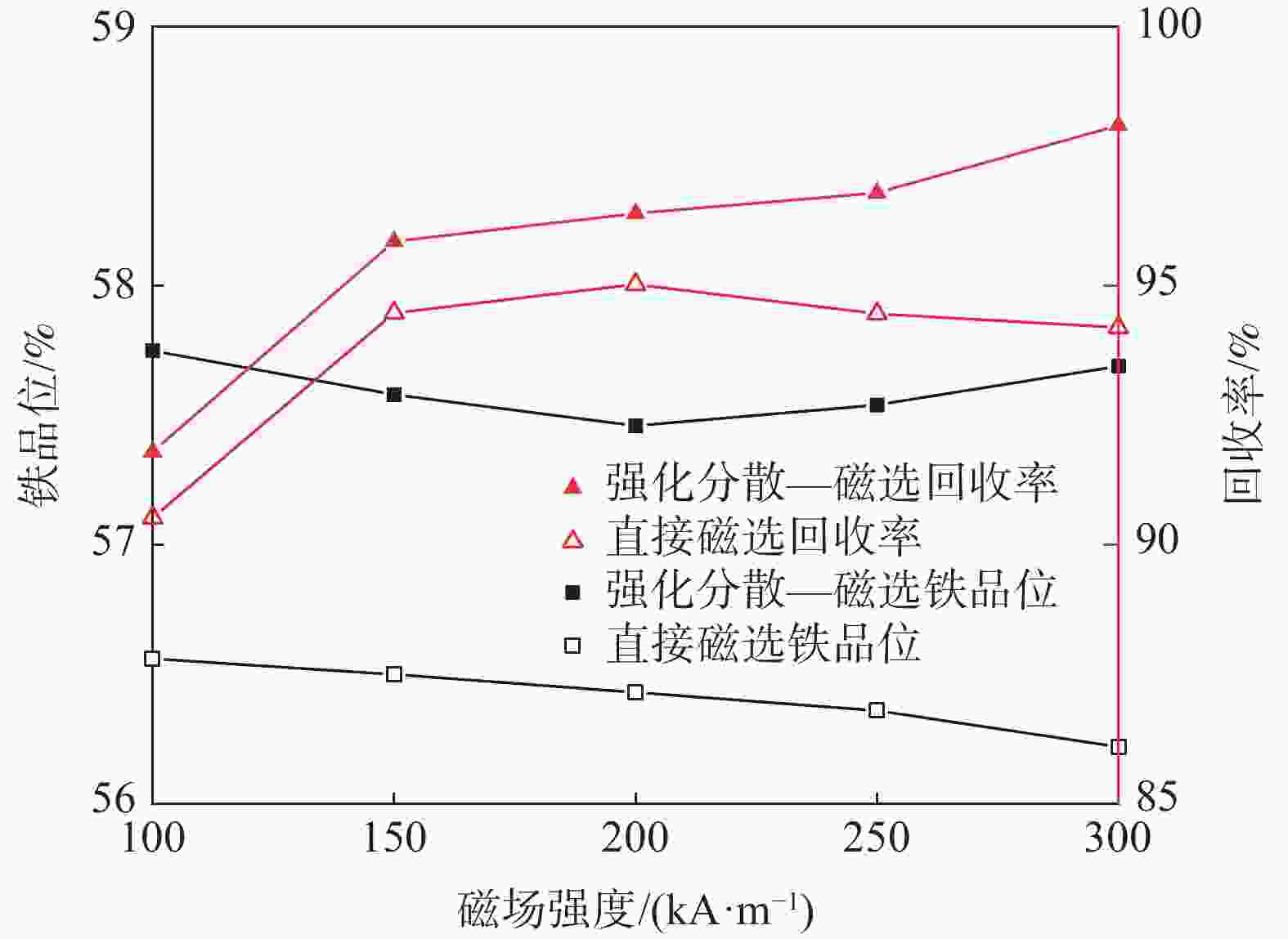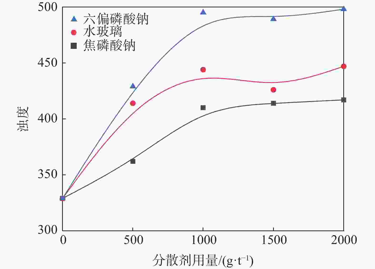 [1] Zhang Xiang. The present situation and countermeasures of iron ore resource safety in China[J]. Fujian Metallurgy, 2021,50(3):3. (张翔. 浅谈我国铁矿资源安全的现状和对策[J]. 福建冶金, 2021,50(3):3.Zhang Xiang. The present situation and countermeasures of iron ore resource safety in China[J]. Fujian Metallurgy, 2021, 50(3): 3. [2] Cheng Xiangyu, Qian Gongming, Cai Xianyan. The research progress of pretreatment technology for complex refractory iron ore[J]. Metal Mine, 2020(12):1−11. (程翔宇, 钱功明, 蔡先炎, 等. 复杂难选铁矿石预处理方法的研究进展[J]. 金属矿山, 2020(12):1−11.Cheng Xiangyu, Qian Gongming, Cai Xianyan. The research progress of pretreatment technology for complex refractory iron ore[J]. Metal Mine, 2020(12): 1−11. [3] Chen Chao, Zhang Yushu, Li Xiaoyu, et al. Research progress in titanium-magnetite beneficiation technology[J]. Multipurpose Utilization of Mineral Resources, 2021(3):7. (陈超, 张裕书, 李潇雨, 等. 钛磁铁矿选矿技术研究进展[J]. 矿产综合利用, 2021(3):7.Chen Chao, Zhang Yushu, Li Xiaoyu, et al. Research progress in titanium-magnetite beneficiation technology[J]. Multipurpose Utilization of Mineral Resources, 2021(3): 7. [4] Wang Xun, Han Yuexin, Li Yanjun, et al. Research status on comprehensive development and utilization of vanadium-titanium magnetite[J]. Metal Mine, 2019(6):33−37. (王勋, 韩跃新, 李艳军, 等. 钒钛磁铁矿综合利用研究现状[J]. 金属矿山, 2019(6):33−37.Wang Xun, Han Yuexin, Li Yanjun, et al. Research status on comprehensive development and utilization of vanadium-titanium magnetite[J]. Metal Mine, 2019(6): 33−37. [5] Ku Jiangang, Zhang Wenbin. Experimental study on -45 μm part of Panzhihua vanadium and titanium bearing magnetic ore to improve the concentrate[J]. China Mining Magazine, 2005,14(11):3. (库建刚, 张文彬. 提高攀枝花钒钛磁铁矿-45μm精矿指标的试验研究[J]. 中国矿业, 2005,14(11):3.Ku Jiangang, Zhang Wenbin. Experimental study on -45 μm part of Panzhihua vanadium and titanium bearing magnetic ore to improve the concentrate[J]. China Mining Magazine, 2005, 14(11): 3. [6] Chen Bi, Li Weiwei, Wang Yong. Study on the difficulties of improving the quality of Panzhihua and Baima vanadium titanium magnetite iron concentrates[J]. Modern Mining, 2022,38(10):258−261. (陈碧, 李韦韦, 王勇. 攀枝花白马钒钛磁铁矿铁精矿提质的难点研究[J]. 现代矿业, 2022,38(10):258−261.Chen Bi, Li Weiwei, Wang Yong. Study on the difficulties of improving the quality of Panzhihua and Baima vanadium titanium magnetite iron concentrates[J]. Modern Mining, 2022, 38(10): 258−261. [7] Su Youshun, Zeng Haipeng, Huang Hongjun. Dispersion mechanism of sodium hexametaphosphate on potassium feldspar and hematite[J]. Mining and Metallurgical Engineering, 2023,43(2):61−65. (舒有顺, 曾海鹏, 黄红军. 六偏磷酸钠对钾长石和赤铁矿的分散作用机理[J]. 矿冶工程, 2023,43(2):61−65.Su Youshun, Zeng Haipeng, Huang Hongjun. Dispersion mechanism of sodium hexametaphosphate on potassium feldspar and hematite[J]. Mining and Metallurgical Engineering, 2023, 43(2): 61−65. [8] Lu Yiping, Zhang Mingqiang, Feng Qiming, et al. Effect of sodium hexametaphosphate on separation of serpentine from pyrite[J]. Transactions of Nonferrous Metals Society of China, 2011,21(1):208−213. (卢毅屏, 张明强, 冯其明, 等. 六偏磷酸钠在蛇纹石与黄铁矿分离中的作用[J]. 中国有色金属学报, 2011,21(1):208−213. doi: 10.1016/S1003-6326(11)60701-2Lu Yiping, Zhang Mingqiang, Feng Qiming, et al. Effect of sodium hexametaphosphate on separation of serpentine from pyrite[J]. Transactions of Nonferrous Metals Society of China, 2011, 21(1): 208−213. doi: 10.1016/S1003-6326(11)60701-2 [9] Li Dong, Zhong Hedong, Yin Wanzhong, et al. Classification-dispersion flotation of fine mixed magnetic concentrate[J]. Journal of Northeastern University(Natural Science), 2021,42(12):1761−1767. (李东, 钟河东, 印万忠, 等. 微细粒混合磁选精矿分级——分散浮选试验研究[J]. 东北大学学报(自然科学版), 2021,42(12):1761−1767.Li Dong, Zhong Hedong, Yin Wanzhong, et al. Classification-dispersion flotation of fine mixed magnetic concentrate[J]. Journal of Northeastern University(Natural Science), 2021, 42(12): 1761−1767. [10] Deng Chuanhong, Ma Juner, Zhang Guofan, et al. Effect of water glass on floatation of ilmenite[J]. The Chinese Journal of Nonferrous Metals, 2010,20(3):6. (邓传宏, 马军二, 张国范, 等. 水玻璃在钛铁矿浮选中的作用[J]. 中国有色金属学报, 2010,20(3):6.Deng Chuanhong, Ma Juner, Zhang Guofan, et al. Effect of water glass on floatation of ilmenite[J]. The Chinese Journal of Nonferrous Metals, 2010, 20(3): 6. [11] Wang Yuhua, Chen Xinghua, Hu Yeming, et al. Influences of phosphates on dispersion of fine alumin-silicate minerals[J]. Journal of Central South University(Science and Technology), 2007,38(2):7. (王毓华, 陈兴华, 胡业民, 等. 磷酸盐对细粒铝硅酸盐矿物分散行为的影响[J]. 中南大学学报:自然科学版, 2007,38(2):7.Wang Yuhua, Chen Xinghua, Hu Yeming, et al. Influences of phosphates on dispersion of fine alumin-silicate minerals[J]. Journal of Central South University(Science and Technology), 2007, 38(2): 7. [12] Su Tao, Chen Tiejun, Zhang Yimin, et al. Influence of dispersion-flocculation on micro-fine magnetite low intensity magnetic separation[J]. Metal Mine, 2016(9):83−87. (苏涛, 陈铁军, 张一敏, 等. 分散—絮凝对某微细粒磁铁矿弱磁精选效果的影响[J]. 金属矿山, 2016(9):83−87.Su Tao, Chen Tiejun, Zhang Yimin, et al. Influence of dispersion-flocculation on micro-fine magnetite low intensity magnetic separation[J]. Metal Mine, 2016(9): 83−87. [13] Xu Pengyun. Study on dispersion-magnetic separation of finely-grained weakly-magnetic iron minerals[D]. Changsha: