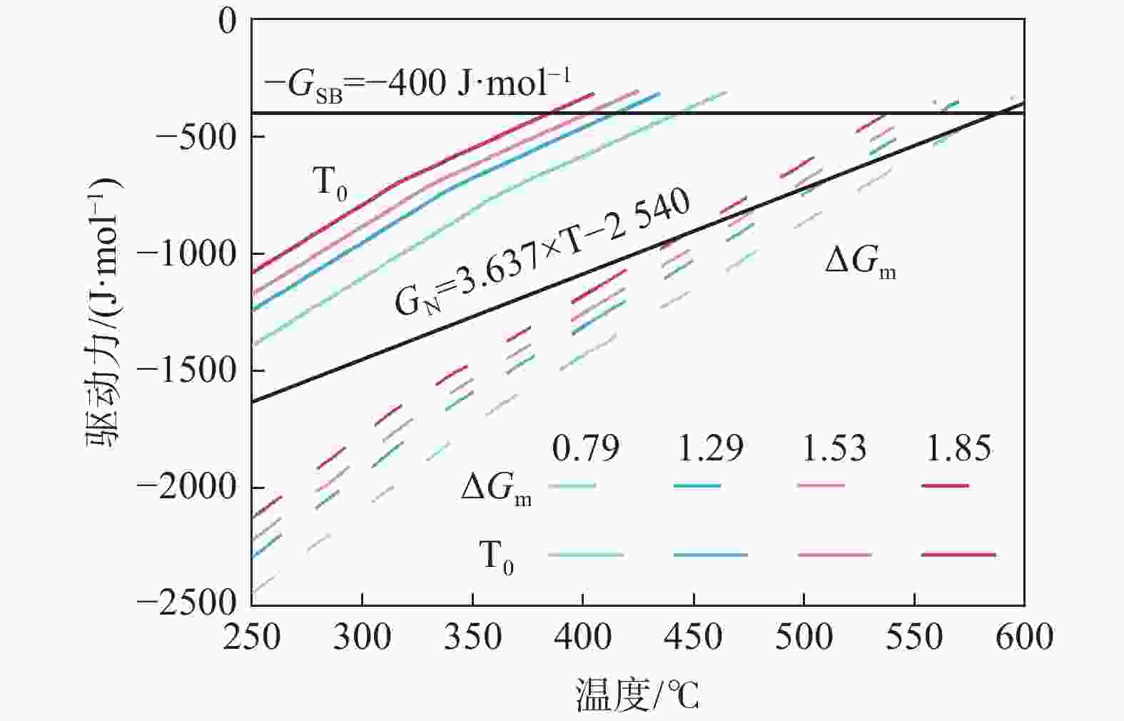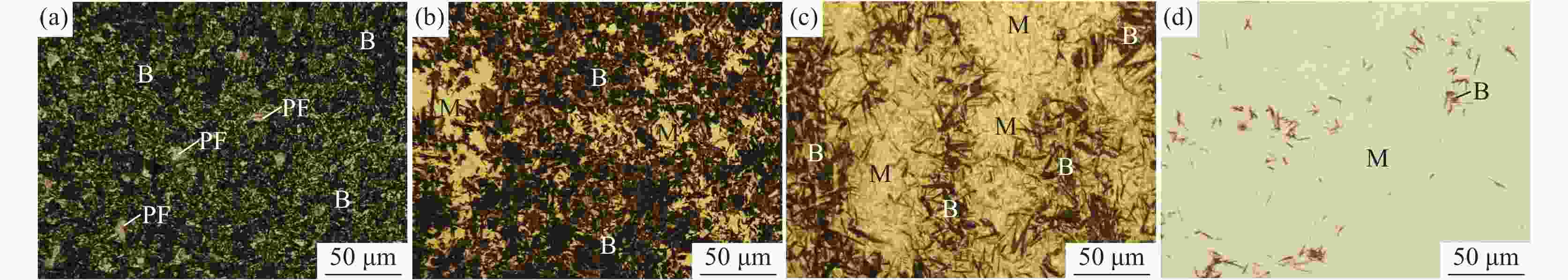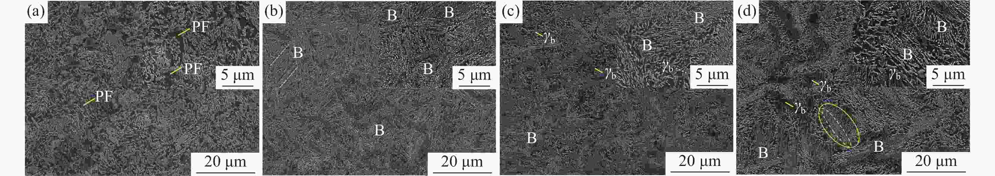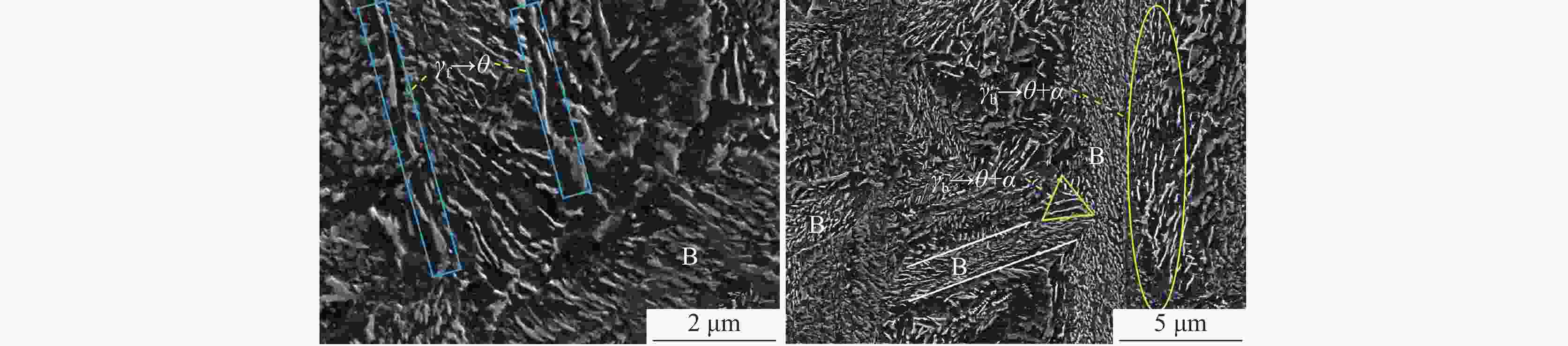 摘要: 设计并熔炼了四种锰含量(质量分数分别为0.76%、1.29%、1.53%、1.85%)的中碳低硅贝氏体钢,利用OM、SEM、XRD仪器和拉伸、冲击试验机等研究了锰含量的添加对试验钢显微组织和力学性能的影响。结果表明,锰元素抑制了铁素体与珠光体相变;锰元素的添加降低了贝氏体的形核驱动力,减少了贝氏体最大转变量,使得贝氏体转变停滞后剩余的过冷奥氏体尺寸增大,含量增加;这些奥氏体在后续等温过程中大部分分解为粗大碳化物和铁素体混合组织,并围绕在贝氏体板条周围,形成了局部粗化组织,少部分保存至室温形成残余奥氏体;随着锰含量的增加,试验钢的屈服强度和冲击韧性逐步下降,抗拉强度由于合金化和组织粗化两因素的相互竞争先升高后降低;综合考虑贝氏体钢热处理难度与力学性能,锰含量为1.29% 时最适合作为弹簧用钢。Abstract: Four medium-carbon low-Si bainitic steels with different Mn contents(0.76%, 1.29%, 1.53%, 1.85%) were designed and smelted. The effect of manganese content on the microstructure and mechanical properties of the test steel was studied by OM, SEM, XRD and tensile and impact tests. The results show that the phase transformation between ferrite and pearlite is inhibited by manganese. Manganese addition decreases the nucleation driving force of bainite, causing the declining maximum transformation amount of bainite, and increases the size and content of the remaining supercooled austenite after bainite transformation stagnation. Most of the remaining austenite decomposes into coarse carbide and ferrite mixed structure in the subsequent isothermal process, and forms local coarse structure around the bainite lath. A small amount of the austenite stabilize to room temperature and then form retained austenite. With the increase of manganese content, the yield strength and impact toughness of the test steel gradually decrease, and the tensile strength firstly increase and then decrease due to the competition between alloying and microstructure coarsening. Considering the complexity of heat treatment and balanced mechanical properties of bainitic steel, 1.29% manganese content is proposed for spring steel.