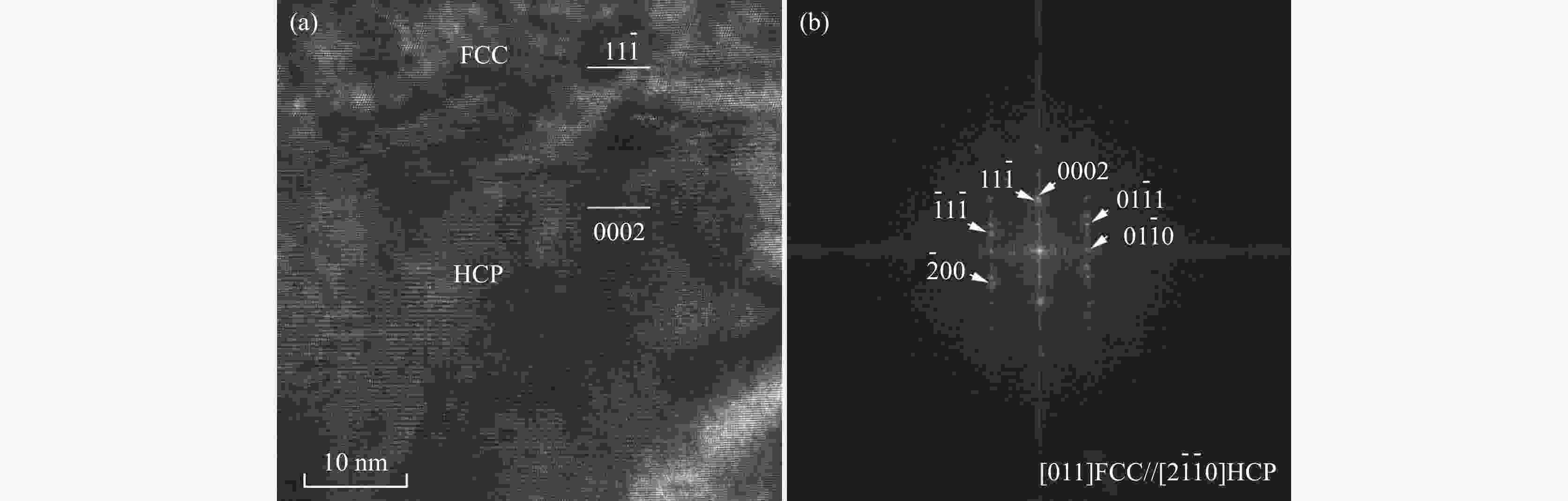 • 摘要: 钛合金中的相转变行为对材料的塑性变形以及力学性能起到至关重要的影响。因此,有必要深入研究钛合金的相转变行为,并在此基础上揭示相转变的机制。采用一种新颖的热处理工艺成功在Ti-6Al-4V钛合金中引入细β晶马氏体组织。发现在拉伸载荷条件下存在变形诱导HCP相向FCC相转变的行为,并揭示了相转变机制。HCP相与新形成的FCC相之间满足晶体学取向关系:(0002)HCP || $({11\bar 1 })$FCC以及$< {2\bar 1\bar 10}>$HCP || <011>FCC。通过两相之间的晶体学取向关系提出相转变机制:HCP相(0001)晶面上每两个原子层之间的一个1/3$< {10\bar 10}>$肖克莱不全位错滑移。通过第一性原理计算HCP相向FCC相转变过程中(0001)$< {10\bar 10}>$层错能变化,成功验证了该相转变机制。