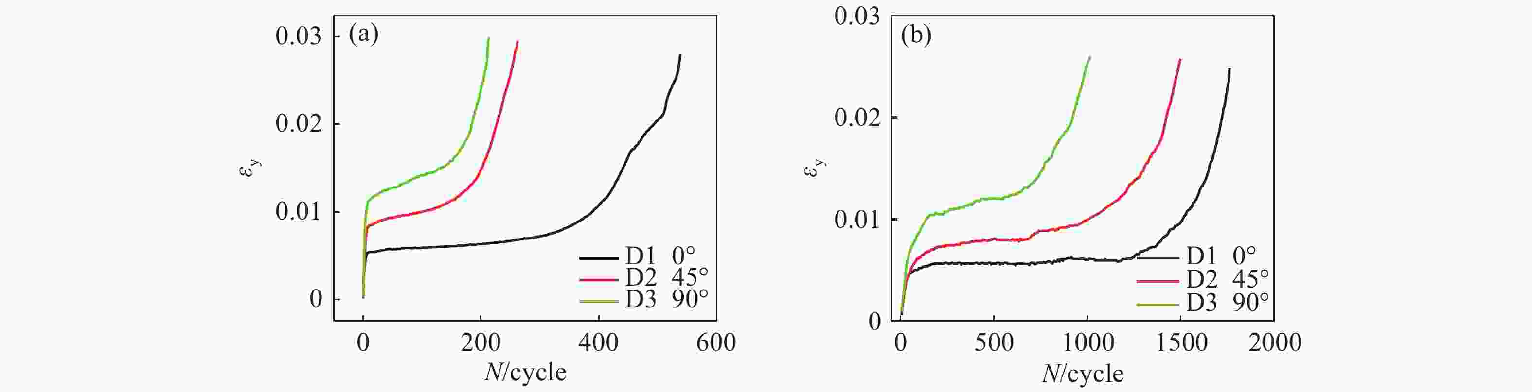 摘要: 通过数字图像相关技术从宏观塑性变形方面研究了堆积方向对激光选区熔化(SLM)TC4合金缺口件局部循环塑性行为的影响。结果表明:缺口附近的塑性变形受堆积方向和缺口半径的影响,进而影响缺口件的疲劳寿命。缺口根部的棘轮应变及其应变率随堆积方向改变(0°至90°)而降低,同时也随缺口半径的增加而降低。与缺口半径相比,棘轮应变及应变率和疲劳寿命对堆积方向敏感性更低。研究结果为SLM构件的疲劳设计提供了一定的理论参考。Abstract: In this paper the influence of stacking direction on the local cyclic plastic behavior of selective laser melted (SLM) TC4 alloy notched parts had been investigated through digital image correlation technology. The results indicate that the plastic deformation near the root of the notched parts can be influenced by the stacking direction and notch radius, thereby affecting the fatigue life of the notched parts. The ratcheting strain and strain rate near the root of the notch decrease with the change of stacking direction (from 0° to 90°), and also decrease with the change of the notch radius. Compared with effect by notch radius, stacking direction cause less influence on the ratchet strain, strain rate and fatigue life. The research results will provide a certain theoretical reference for the fatigue design of SLM parts.