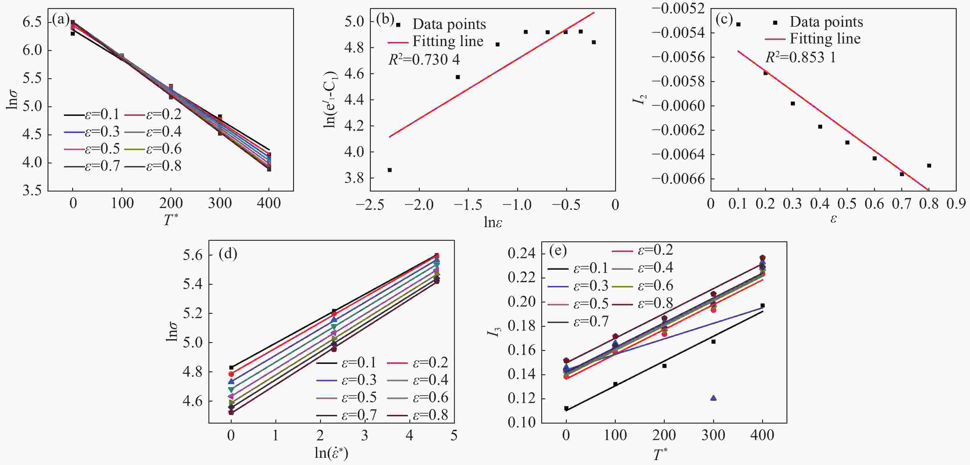 ε C5 C6 0.1 0.01507 0.000497 0.2 0.01701 0.000524 0.3 0.01765 0.000530 0.4 0.01642 0.000556 0.5 0.01763 0.000583 0.6 0.01843 0.000545 0.7 0.01781 0.000564 0.8 0.01896 0.000596 表 3 改进的Z-A本构模型参数