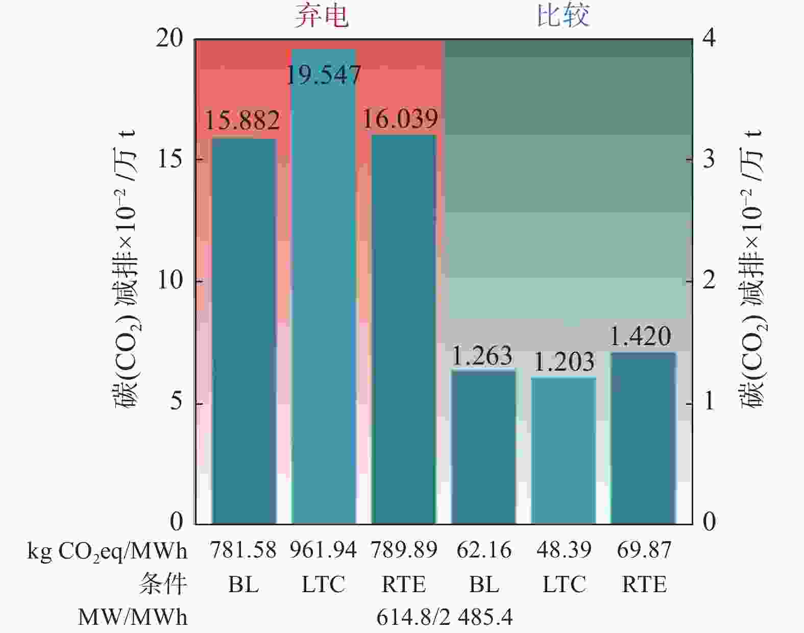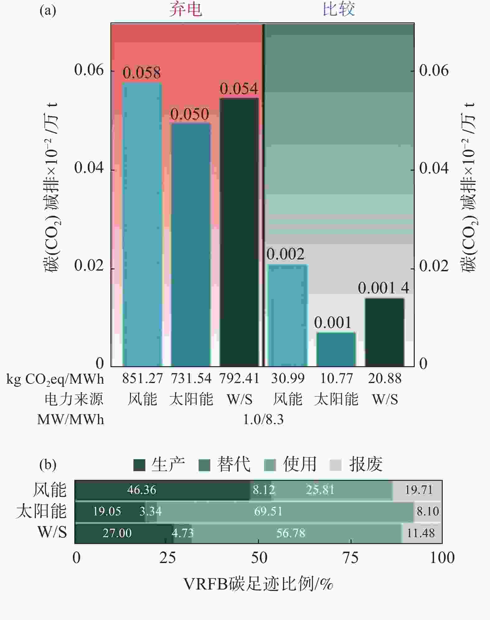 表 1 按照当前运行的VRFB容量,弃电和比较评估情形下VRFB每年的CO2减排量