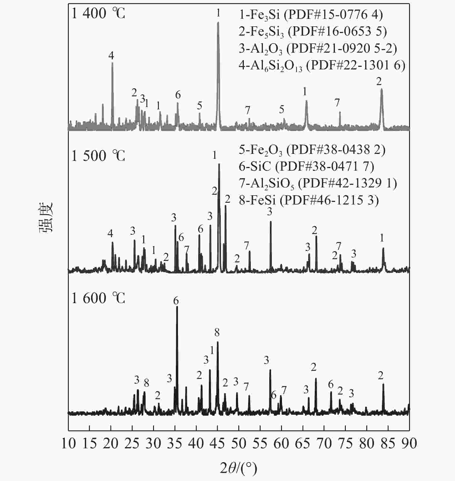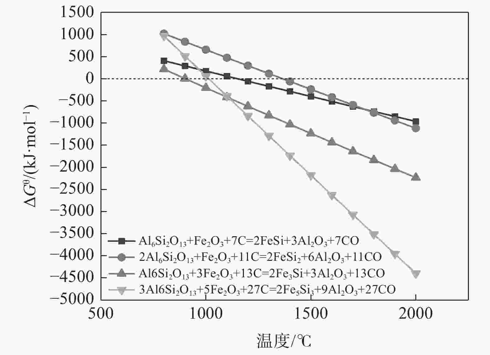 1600 ℃的条件下进行焙烧,保温2 h后随炉冷却,通过破碎、筛分、研磨、磁选处理还原后的物料,得到硅铁合金初级产品及氧化铝含量较高的尾渣,硅的回收率达到76.44%,铝的实际回收率达到93.96%。Abstract: The comprehensive utilization of fly ash is a solid waste industry with high technical content and application potential, which integrates environmental protection and resource recycling. Ferrosilicon alloy was prepared by carbothermal reduction of fly ash under laboratory conditions and alumina was enriched to recover Si, Fe, Al and other elements in fly ash. It was found that the content of silicon in the ferrosilicon alloy increased with the increase of temperature during the reaction. When the carbon content increases, the Al-O-Si bond of the mullite phase in the fly ash is more easily decomposed and reduced to alumina and silica. The carbothermal reduction is carried out under the condition of adding Fe2O3. After adding Fe2O3, not only the temperature of carbothermal reduction can be reduced, but also the silicon dioxide in mullite phase is easier to be reduced to silicon, and combined with metal iron to form ferrosilicon alloy, which creates conditions for the subsequent separation of ferrosilicon alloy and alumina. In this process, fly ash, iron oxide and pulverized coal are mixed at a mass ratio of 5∶4∶2, and roasted in a resistance furnace at 1 600 °C. After holding for two hours, they are cooled with the furnace. After crushing, screening, grinding and magnetic separation, the reduced materials are treated to obtain ferrosilicon alloy primary products and tailings with high alumina content. The desilication rate reaches 76.44%, and the recovery rate of aluminum reaches 93.96%.-