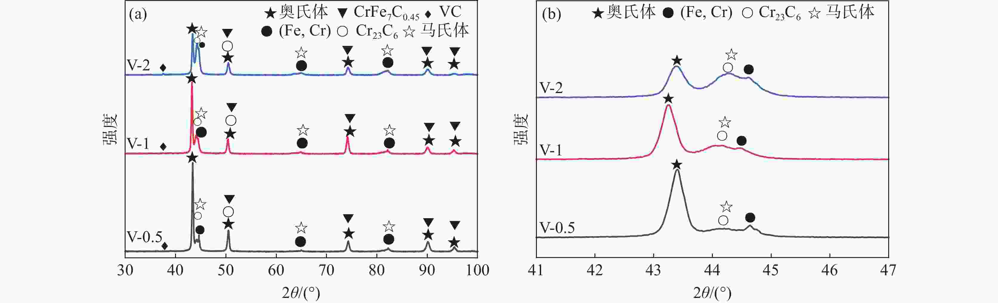 图  5  不同V含量的激光熔覆铁铬合金涂层XRD衍射谱