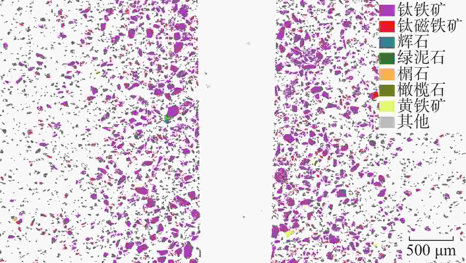 离度/%连生体/% 金红石 钙钛矿 钛铁矿 钛磁铁矿 黄铁矿 含Cr磁铁矿 橄榄石 绿泥石 榍石 角闪石 尖晶石 辉石 钛铁矿 96.58 0.04 0.09 0.00 1.6 0.05 0.01 0.02 0.64 0.55 0.15 0.06 0.12 钛磁铁矿 57.75 0.02 0.06 40.41 0.00 0.16 0.13 0.07 0.78 0.25 0.08 0.03 0.19 表 5 钛铁矿微区电子探针分析结果
