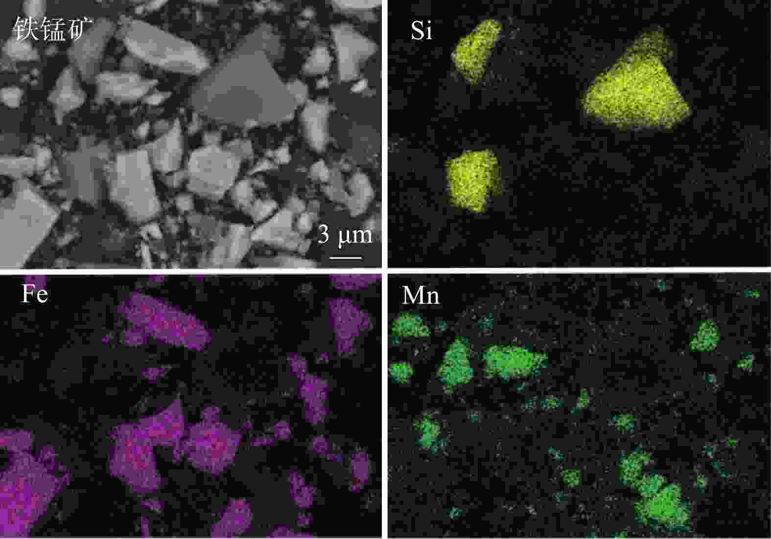 图  2  铁锰矿的SEM形貌以及主要元素分布